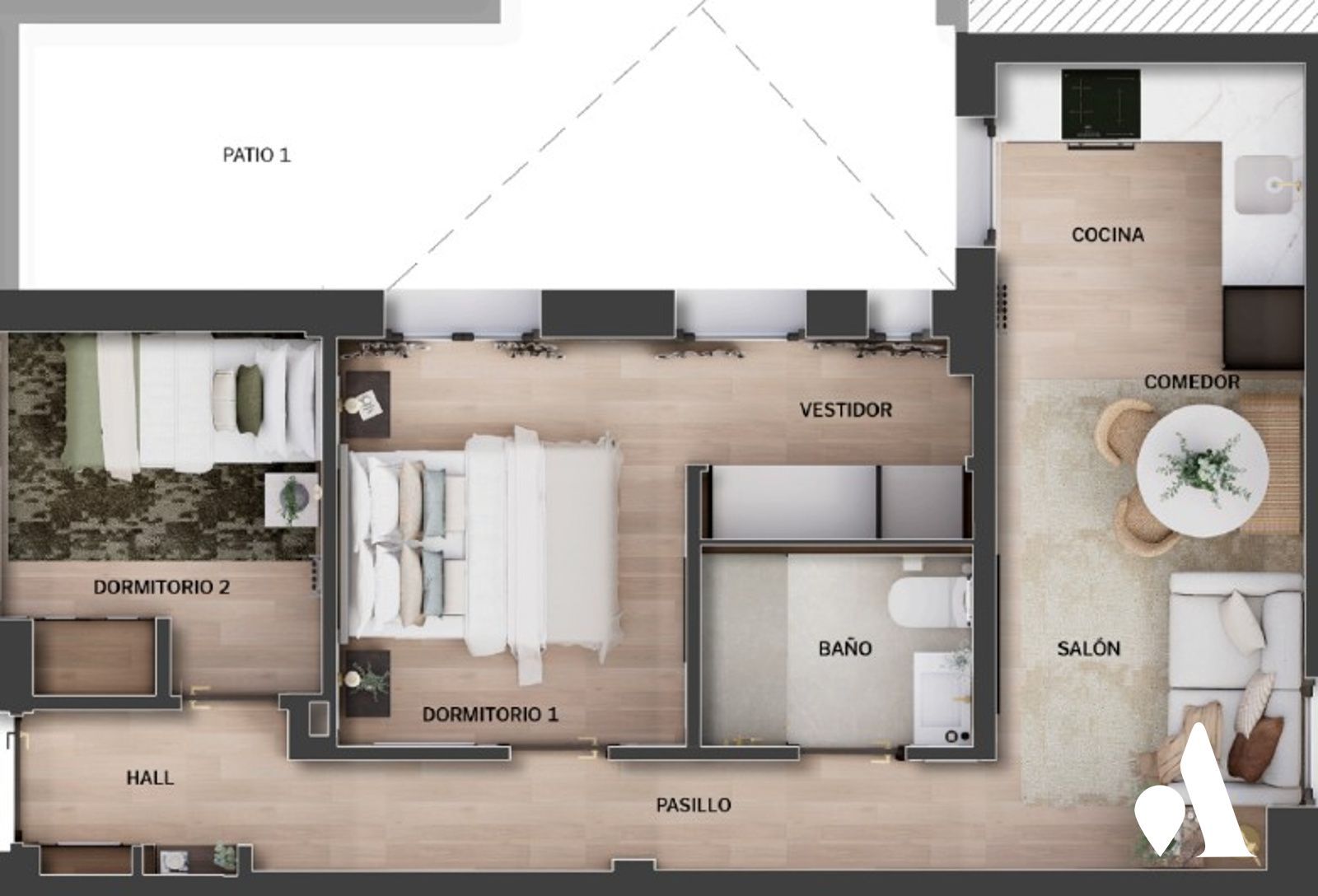 Piso en venta en Madrid, con 68 m2 y 2 habitaciones y 2 baños.
