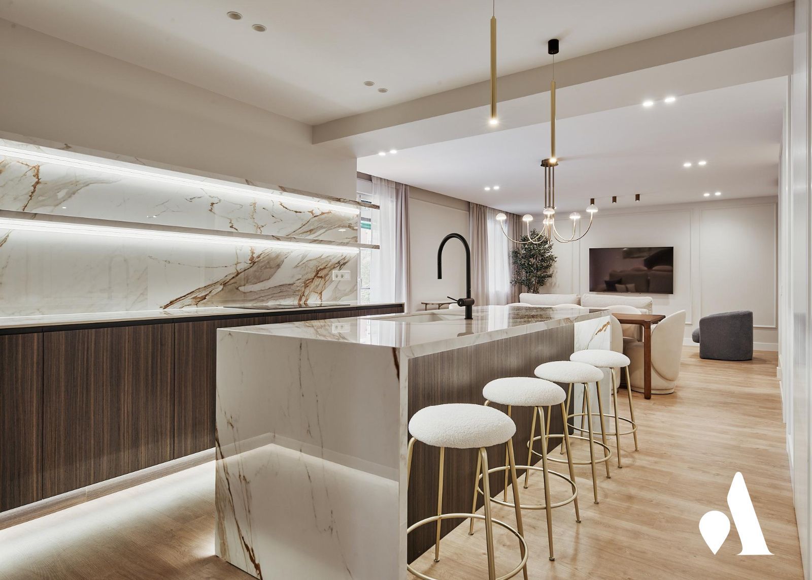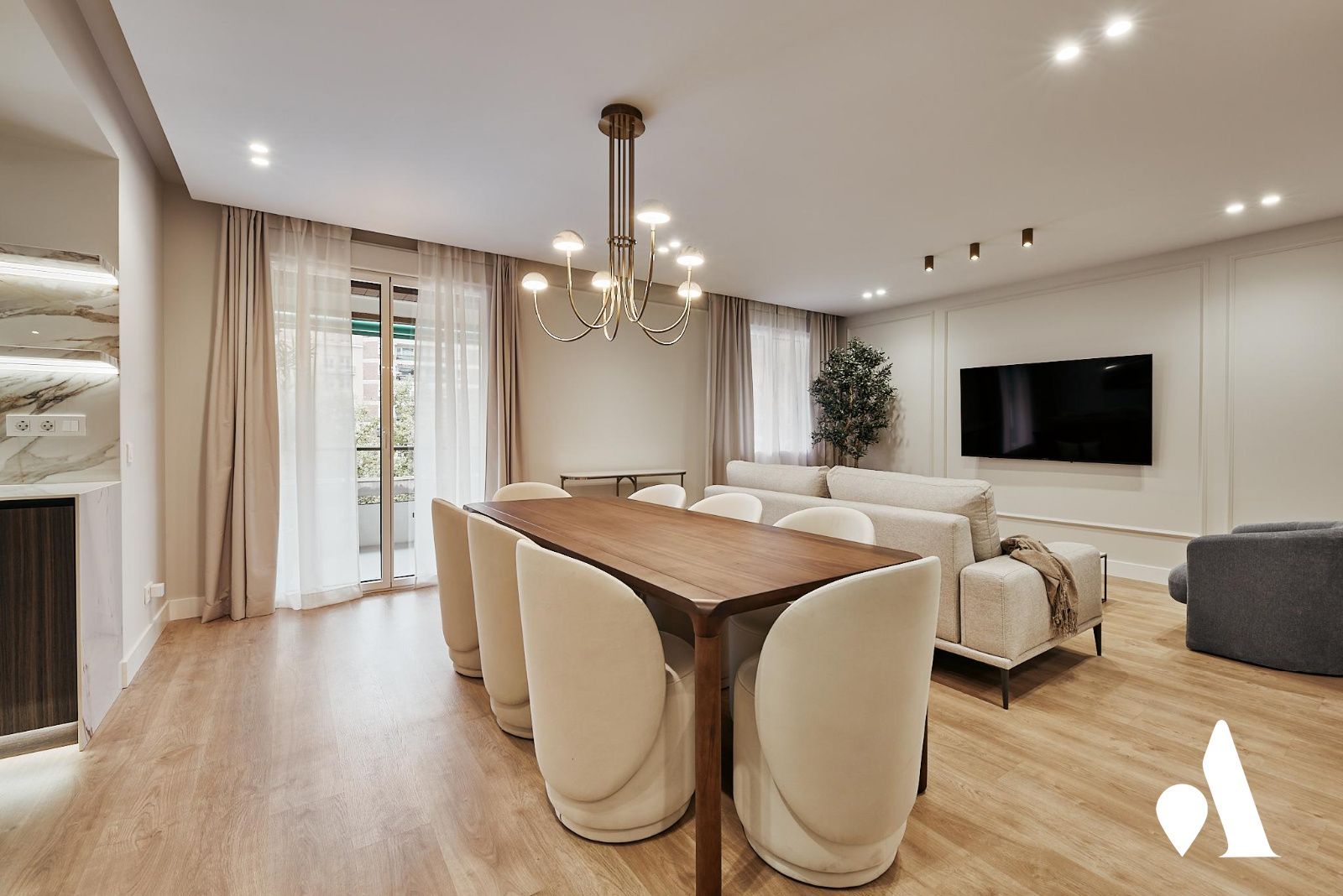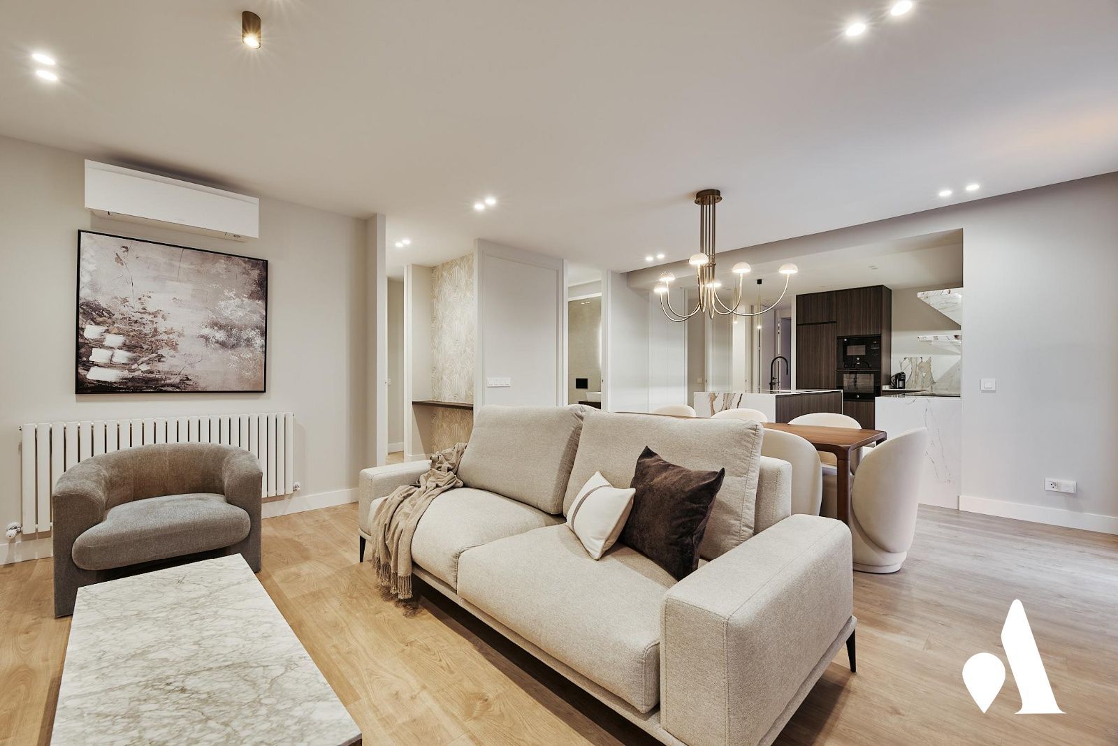 Inmueble en venta situado en Madrid, en la zona de Lista, con 126,00 m2 construidos y 17,00 m2 de terraza. Distribución que favorece la circulación, con una zona social integrada que une sala, comedor y cocina en un concepto abierto, ideal para encuentros y actividades cotidianas. La cocina está amueblada y equipada, con buena iluminación y acceso directo a la terraza, proporcionando un espacio funcional para el día a día.