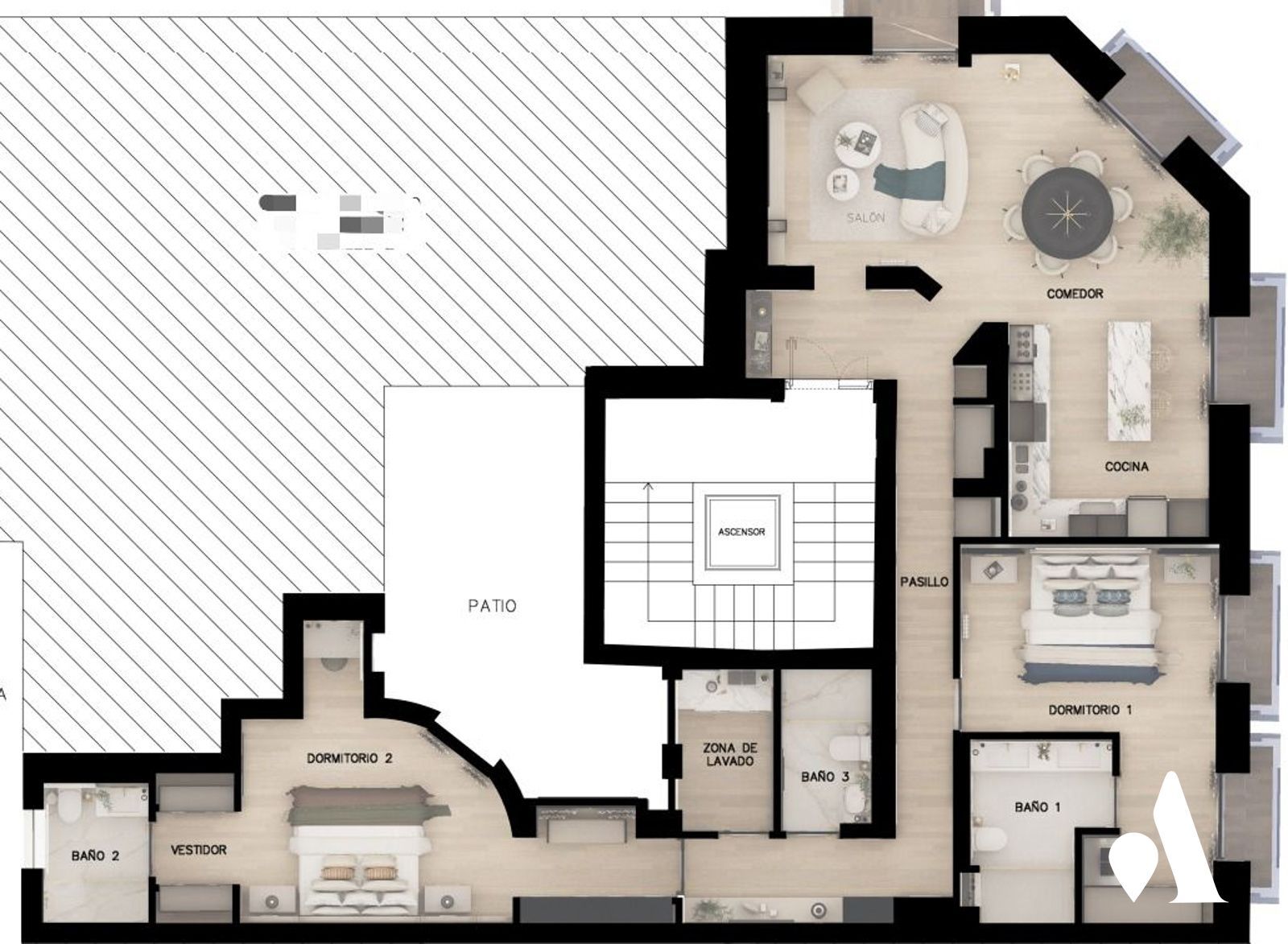 Piso en venta en Madrid, con 105 m2, 2 habitaciones y 2 baños, Ascensor y Amueblado.