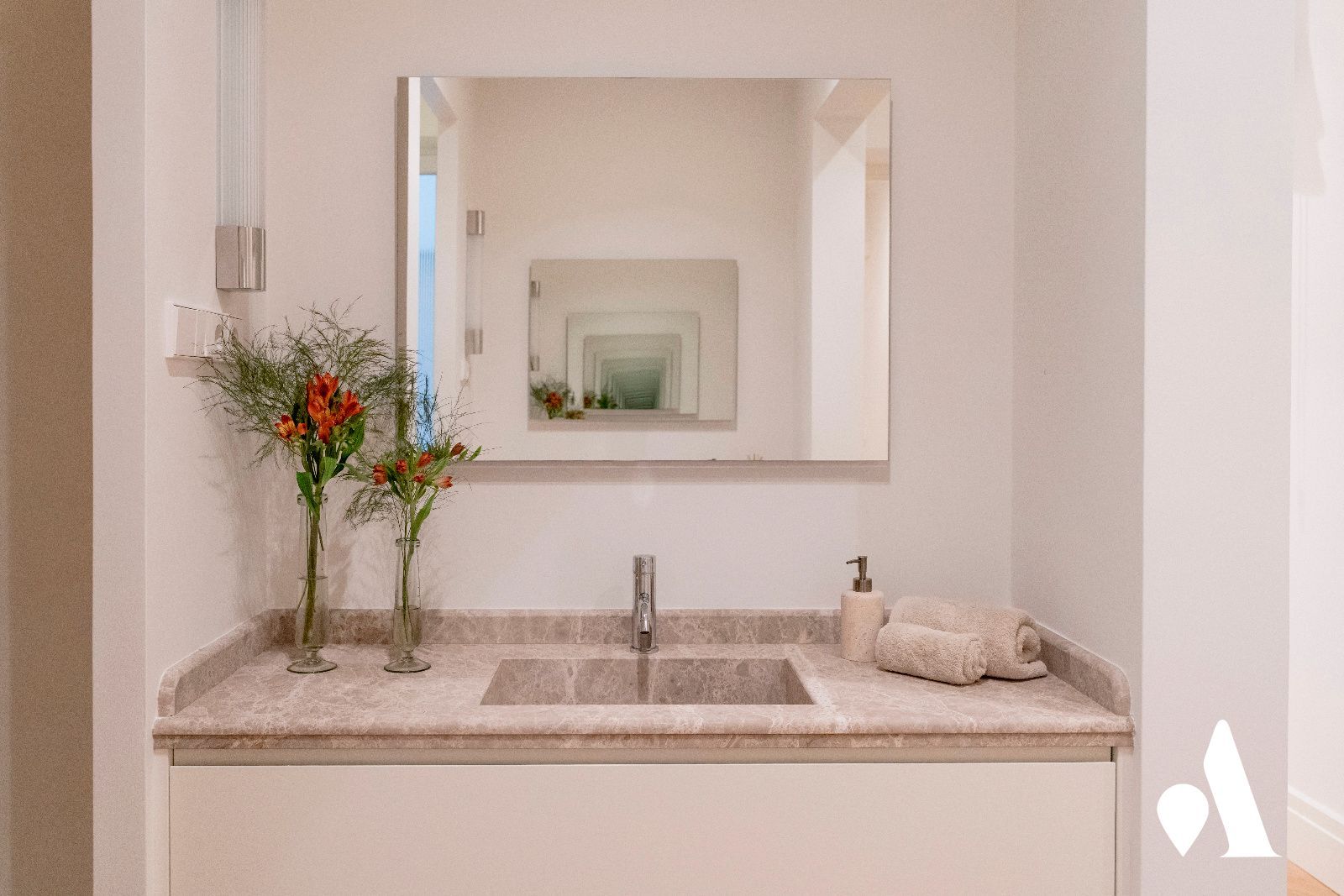 El inmueble dispone de dos habitaciones, cada una de ellas ofrece un ambiente acogedor. Los tres baños del piso han sido cuidadosamente instalados, garantizando privacidad y comodidad para los residentes y sus invitados. La cocina, totalmente amueblada, con todos los electrodomésticos necesarios y un diseño moderno, se convierte en un espacio ideal.
