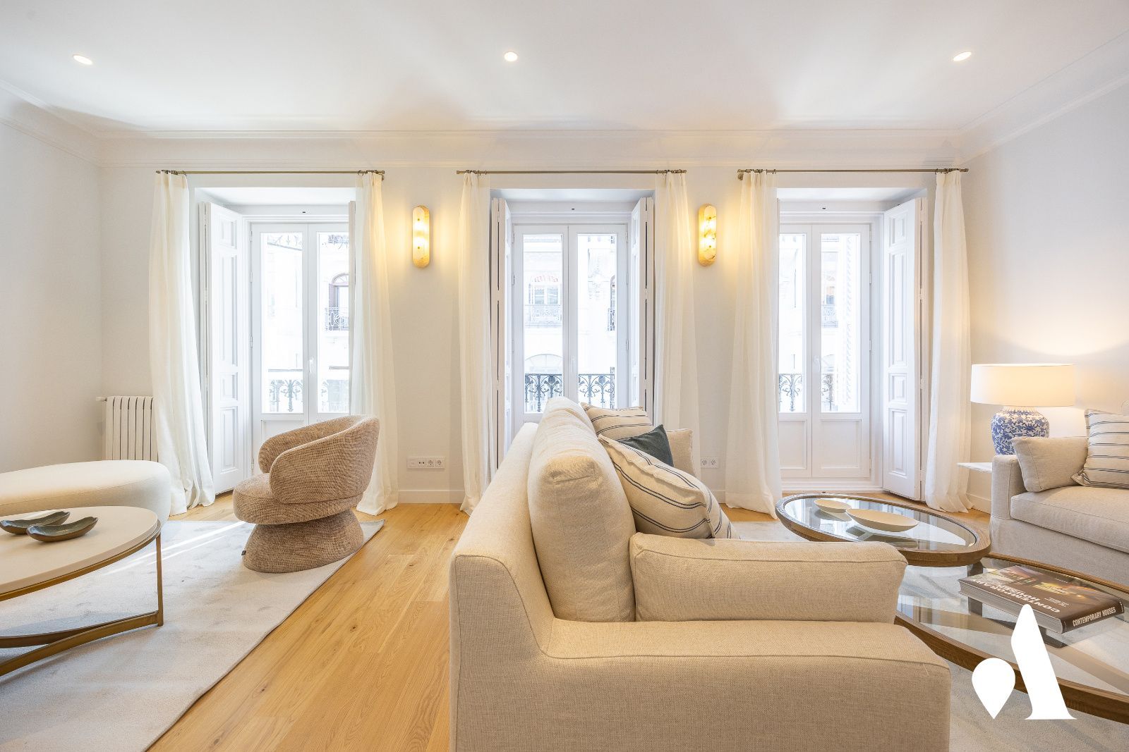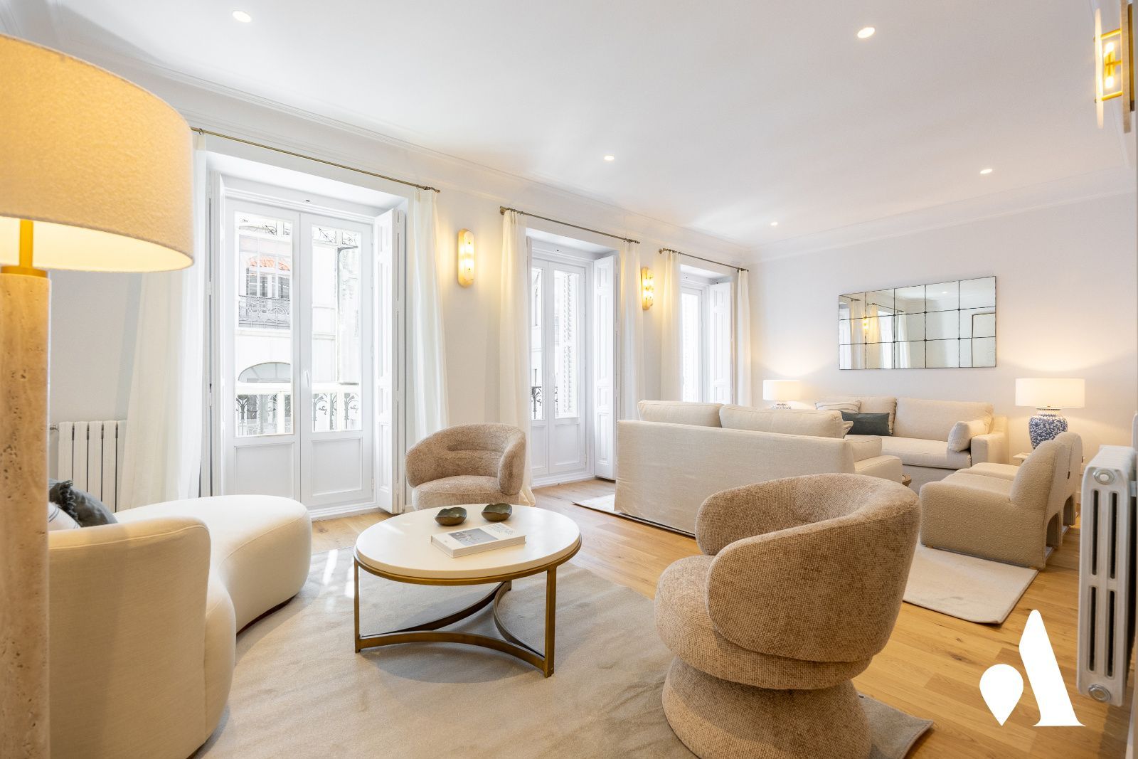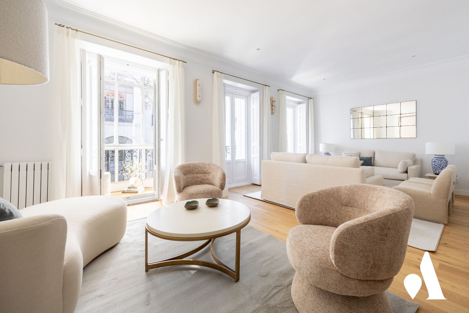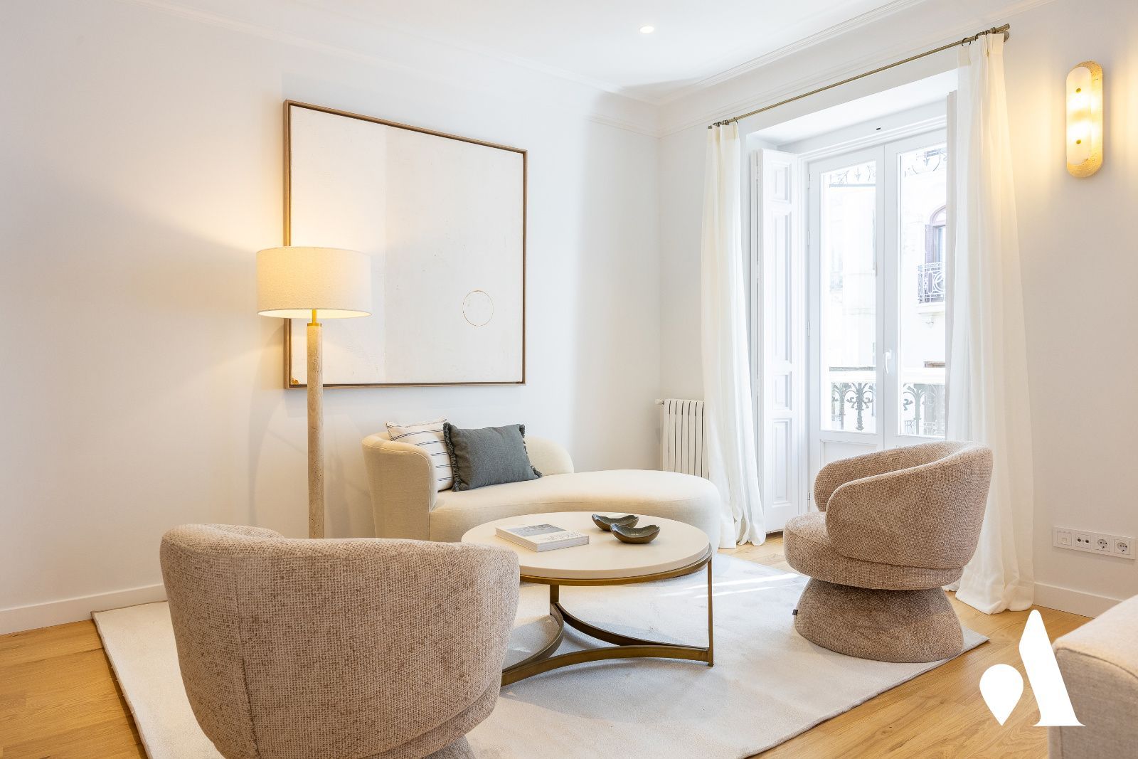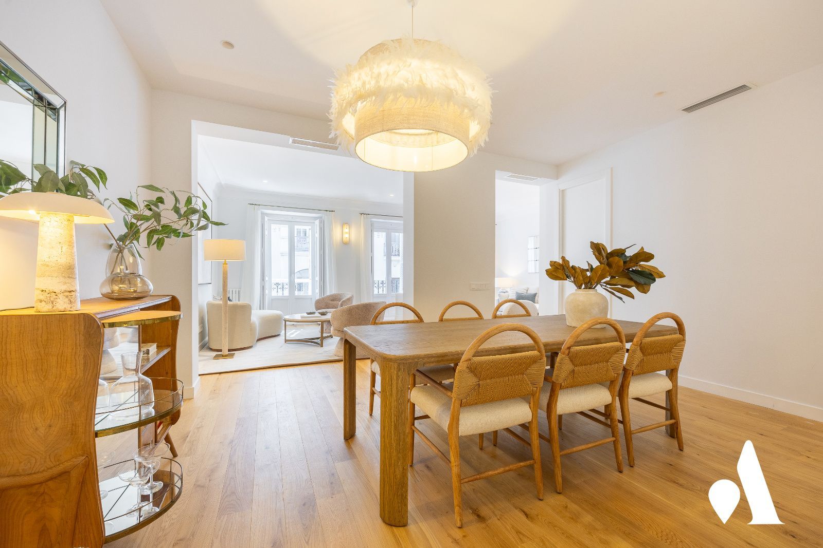 El inmueble se ubica en la cuarta planta exterior, con tres balcones, uno de ellos mirador, que permiten vistas al Retiro y al Petit Palace. La amplitud de 182 m2 construidos se distribuye en espacios bien diferenciados, contempla dos zonas de salones que se articulan alrededor de un comedor, conectados con una cocina abierta de diseño moderno, completamente equipada y lista para entrar a vivir. En la zona más privada, se localizan tres dormitorios en suite que incorporan armarios empotrados y baños completos de calidad. El conjunto se complementa con un aseo de cortesía y una zona de lavandería independiente.