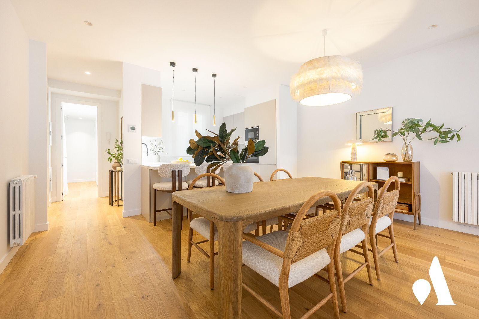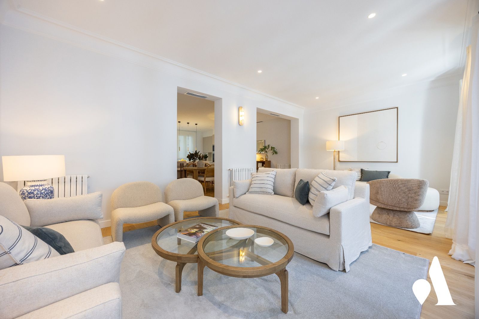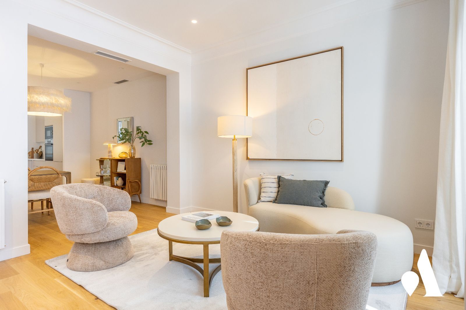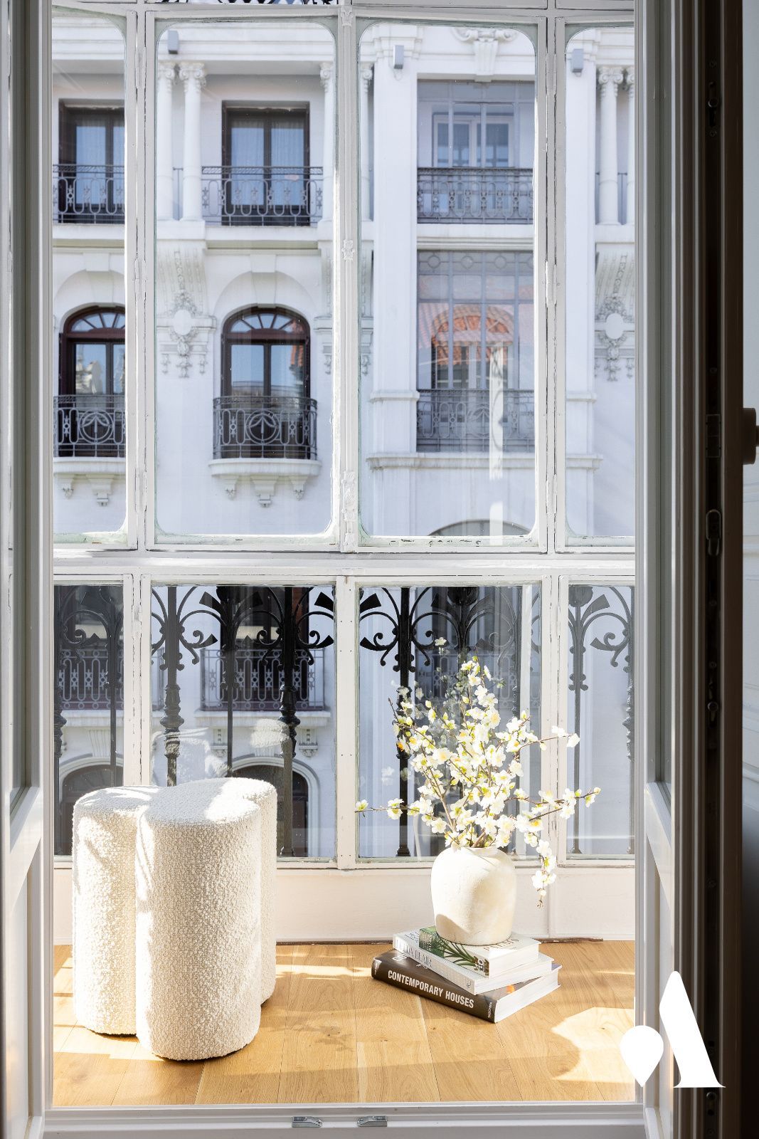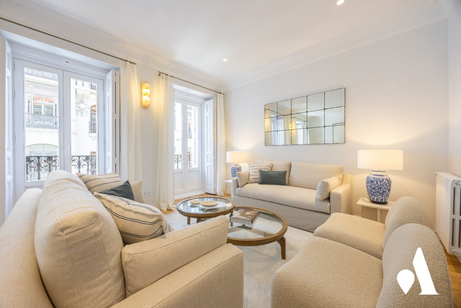 El inmueble se ubica en la cuarta planta exterior, con tres balcones, uno de ellos mirador, que permiten vistas al Retiro y al Petit Palace. La amplitud de 182 m2 construidos se distribuye en espacios bien diferenciados, contempla dos zonas de salones que se articulan alrededor de un comedor, conectados con una cocina abierta de diseño moderno, completamente equipada y lista para entrar a vivir. En la zona más privada, se localizan tres dormitorios en suite que incorporan armarios empotrados y baños completos de calidad. El conjunto se complementa con un aseo de cortesía y una zona de lavandería independiente.