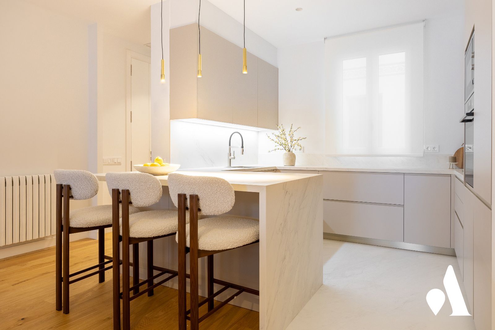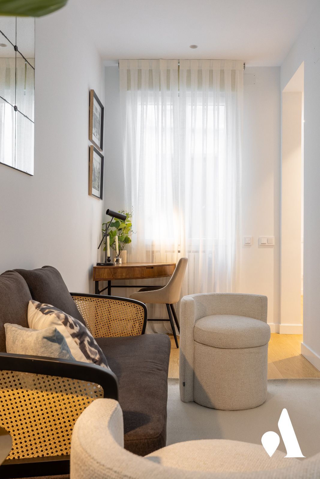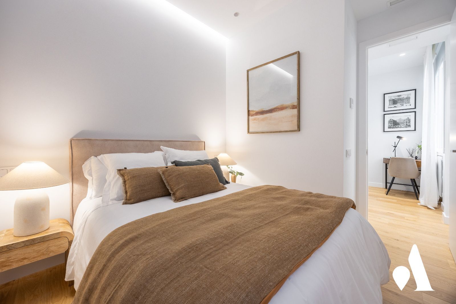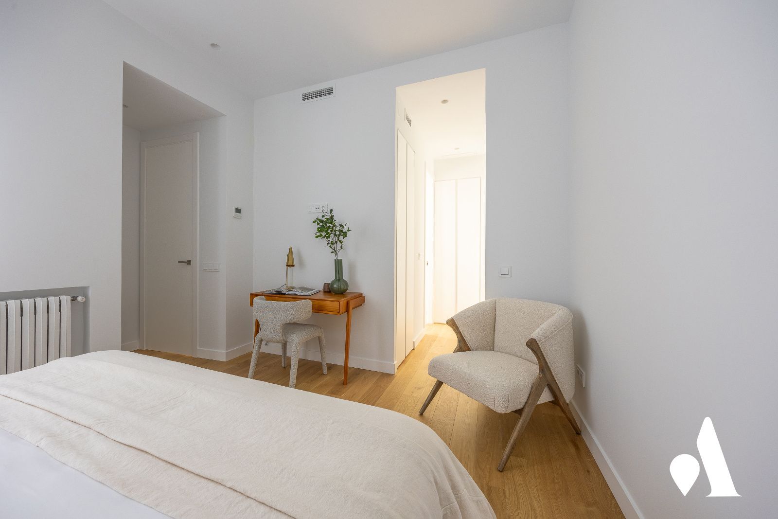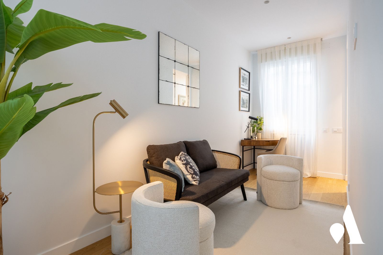 El inmueble se ubica en la cuarta planta exterior, con tres balcones, uno de ellos mirador, que permiten vistas al Retiro y al Petit Palace. La amplitud de 182 m2 construidos se distribuye en espacios bien diferenciados, contempla dos zonas de salones que se articulan alrededor de un comedor, conectados con una cocina abierta de diseño moderno, completamente equipada y lista para entrar a vivir. En la zona más privada, se localizan tres dormitorios en suite que incorporan armarios empotrados y baños completos de calidad. El conjunto se complementa con un aseo de cortesía y una zona de lavandería independiente.