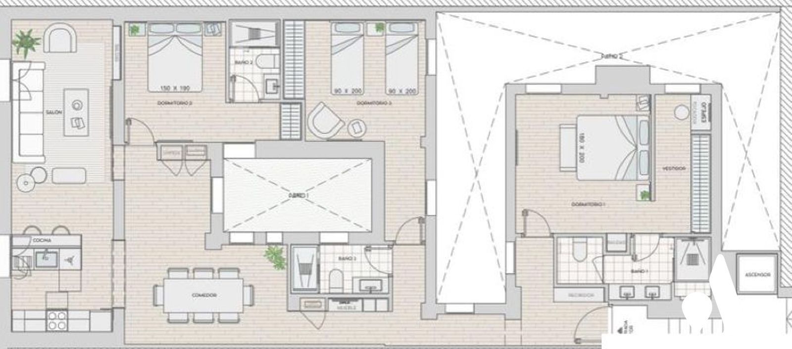Se trata de una vivienda amplia y funcional, con una superficie de 150,00 m2 construidos.  La distribución contempla tres habitaciones, cada una con armarios empotrados que optimizan el almacenamiento y tres baños con acabados modernos. La calefacción central garantiza confort en las épocas de menor temperatura, y el sistema de aire acondicionado mantiene condiciones ideales durante el verano. El inmueble se entrega amueblado y con cocina completamente amueblada, aportando rapidez en la entrada y la posibilidad de comenzar a vivir o a explotar su uso comercial de inmediato.