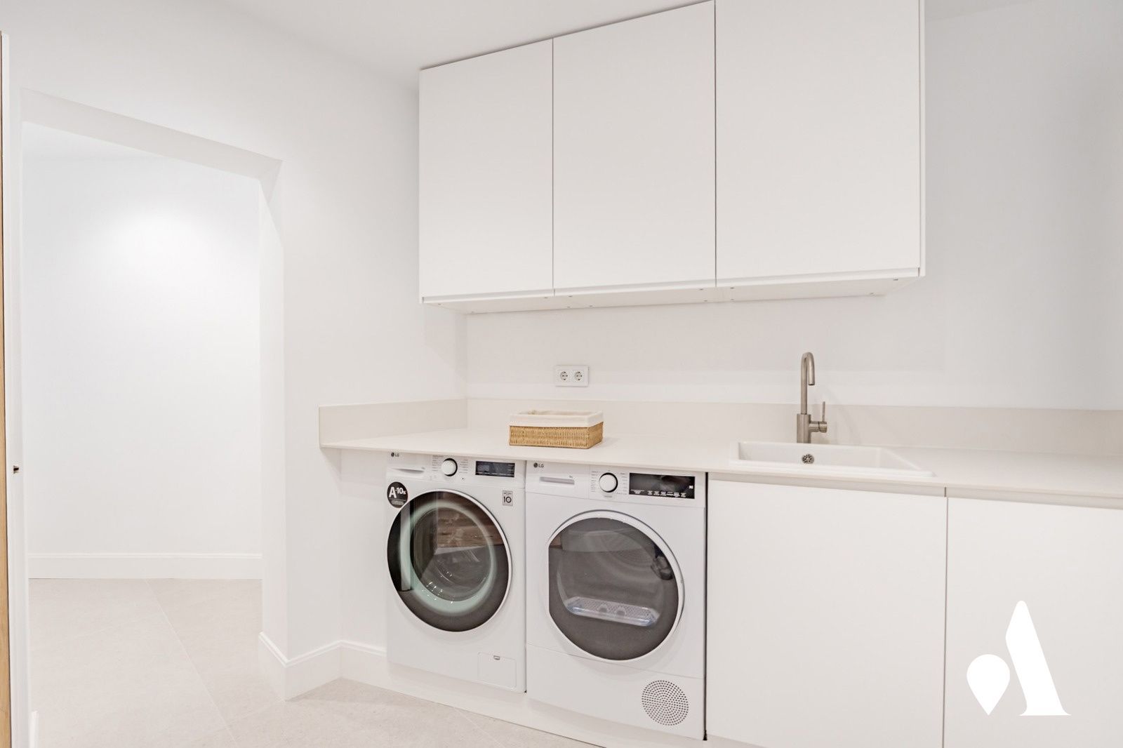 La cocina se organiza en dos zonas separadas, acompañadas de una despensa. Este diseño funcional se completa con lavadero independiente, un detalle relevante para la gestión doméstica diaria y para optimizar la productividad en el uso del hogar. El inmueble incluye trastero en la propia planta, aportando un espacio extra.