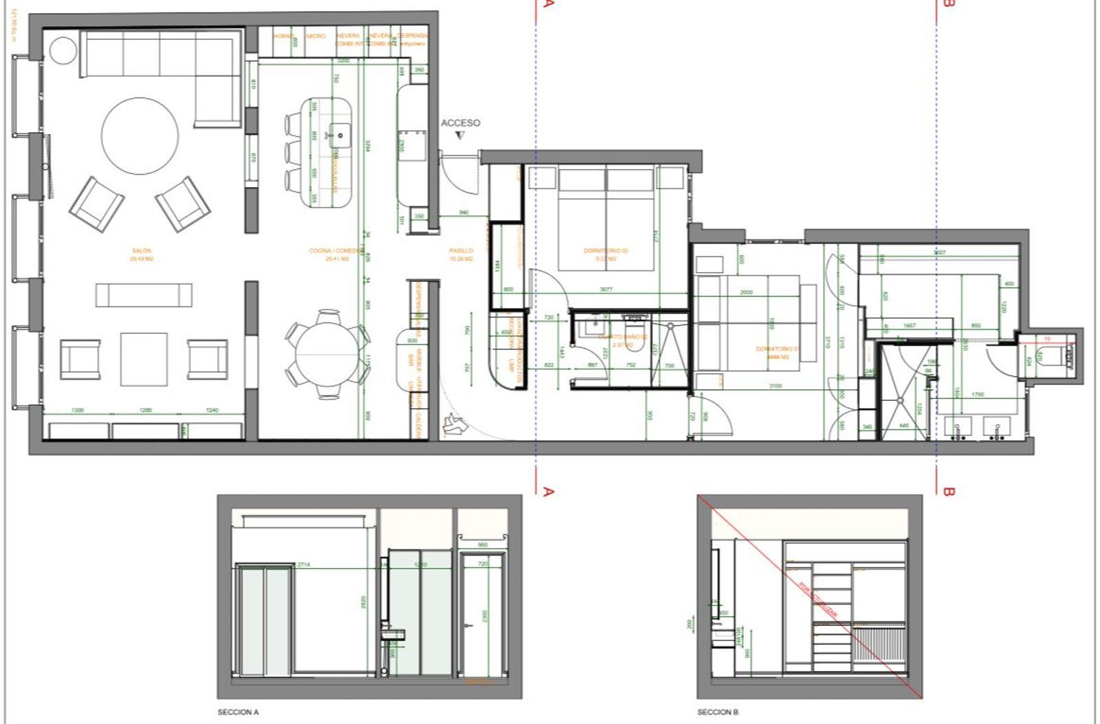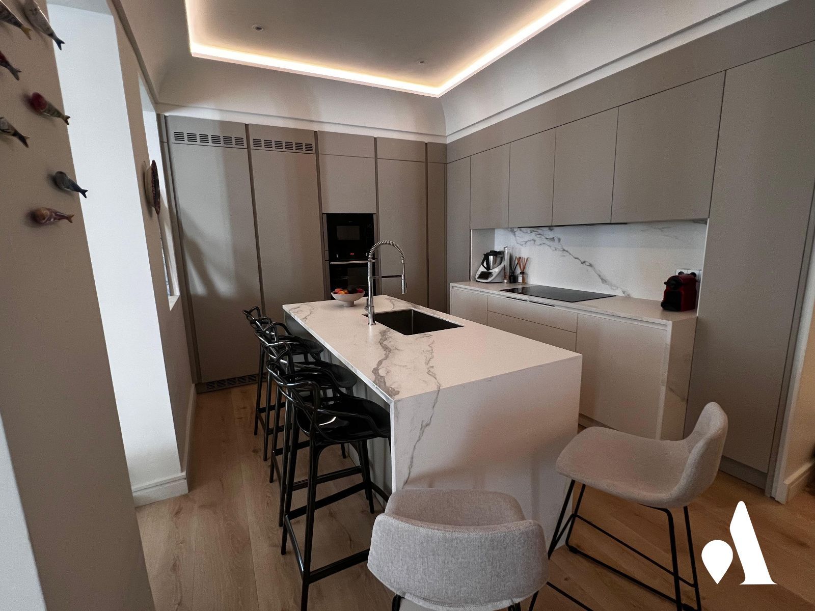 Ubicado en la segunda planta de un elegante edificio clásico, destaca por sus tres balcones a la calle y una distribución que separa con armonía la zona social del área privada. Dispone de dos amplios dormitorios con baños en suite y una cuidada selección de materiales nobles que aportan calidez y sofisticación.