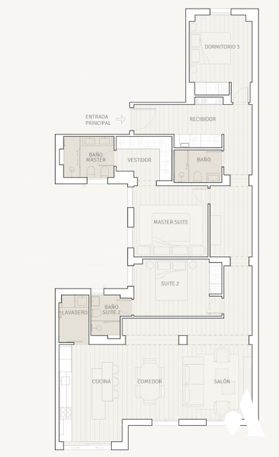 La vivienda ofrece una superficie de 157,00 m2 construidos que se reparten en tres habitaciones y tres baños completos, proporcionando la comodidad necesaria para familias o perfiles que requieren espacios diferenciados para estudio, trabajo y descanso. La distribución está pensada para ampliar la sensación de amplitud, con zonas comunes bien definidas y acabados de calidad. Entre sus elementos destacan armarios empotrados que optimizan el almacenamiento sin sacrificar la estética del conjunto.