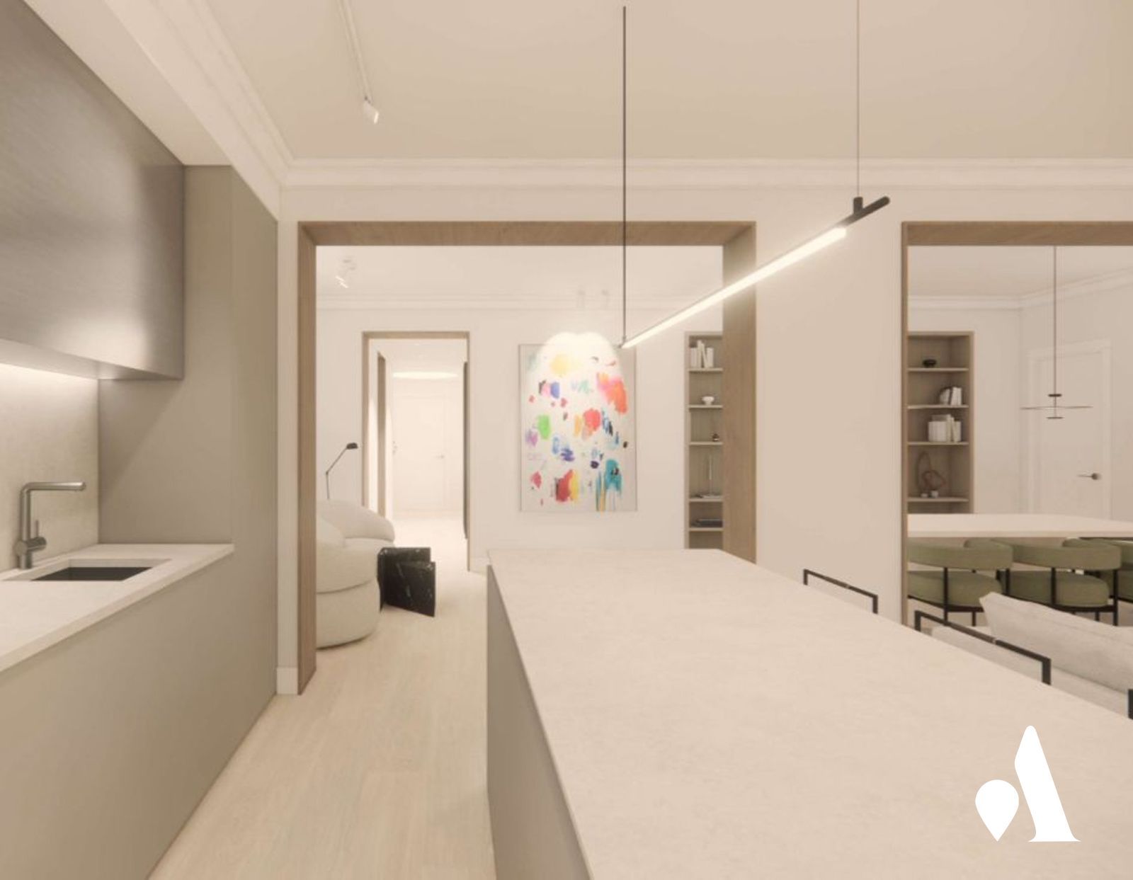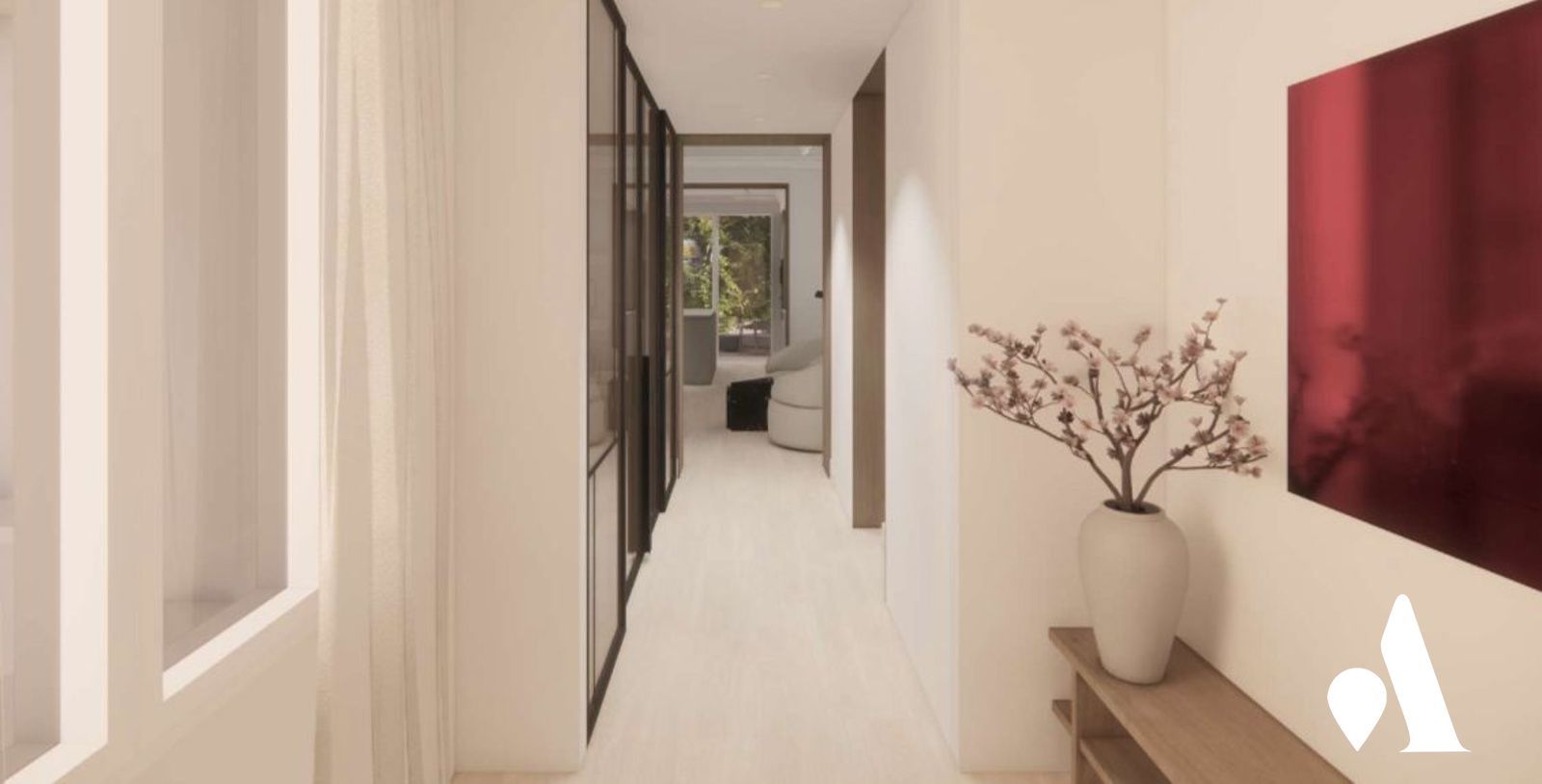 Se accede a una vivienda de distribución funcional, donde la luz natural penetra con continuidad gracias a un gran ventanal en el salón y a la suite principal, ambas orientadas Oeste. La terraza de la zona de día ofrece un espacio exterior agradable para disfrutar de las tardes. La cocina, integrada al salón, se presenta como un eje central de convivencia.