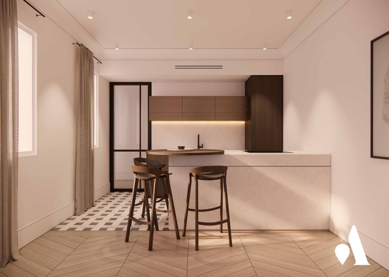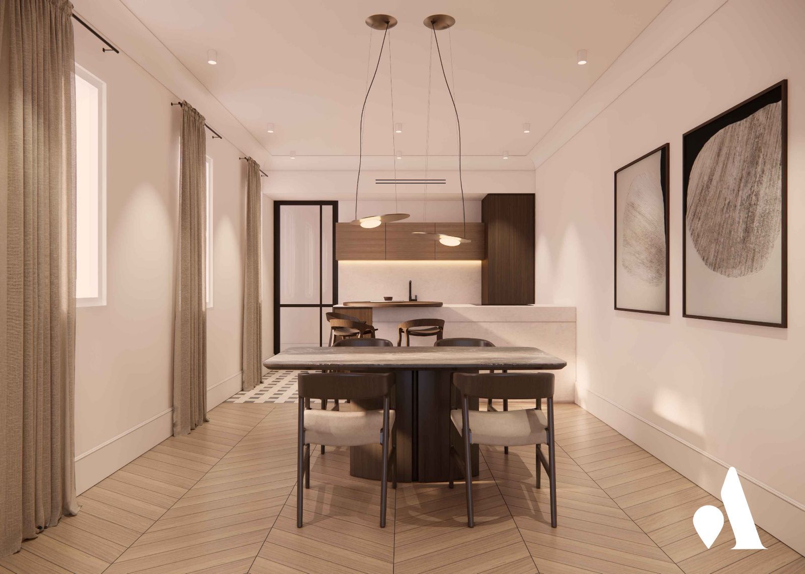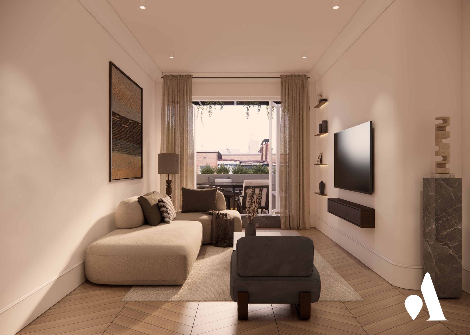 La vivienda cuenta con tres habitaciones y dos baños, lo que facilita la organización de espacios para uso familiar o profesional en régimen mixto. Situado en una zona de alta demanda, rodeado de servicios, comercios y una oferta cultural amplia, el ático representa una inversión atractiva para quienes buscan una vivienda con proyección de valor en Madrid. La orientación sureste de la terraza y la distribución tradicional permiten dotar a la vivienda de una personalidad elegante, con líneas claras y un carácter atemporal.