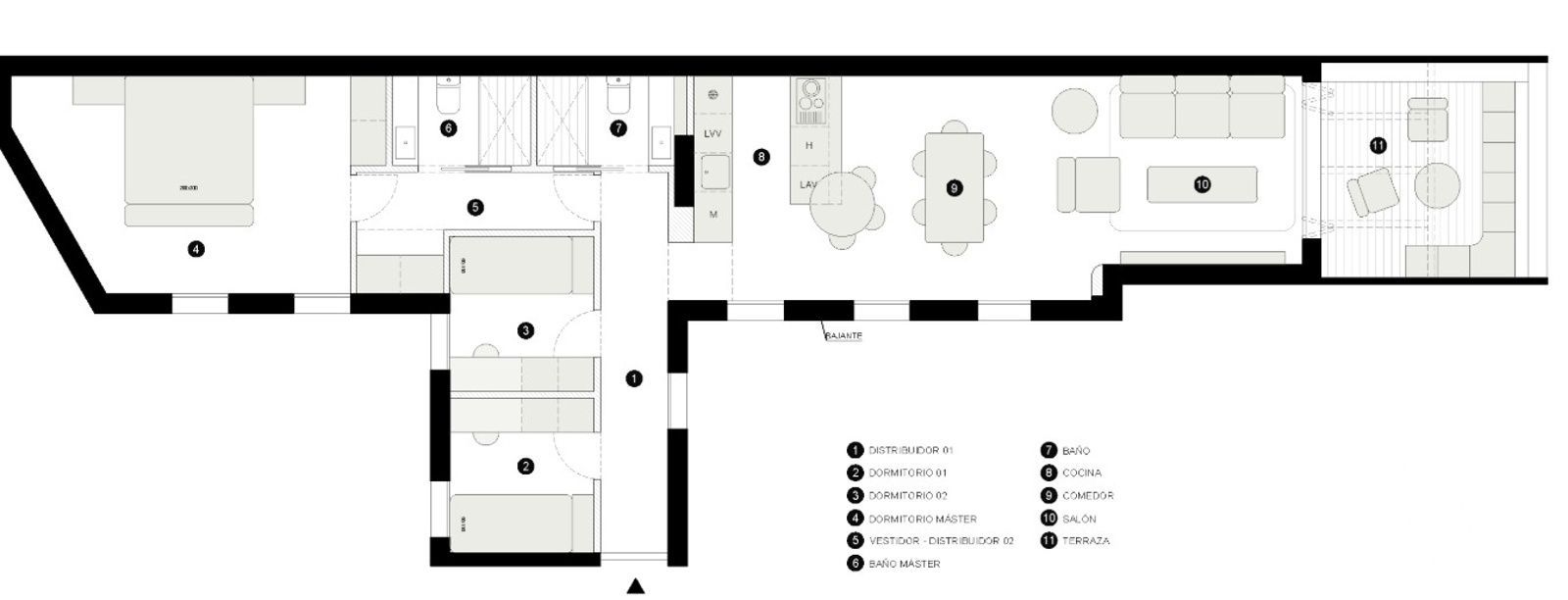La propiedad se encuentra a reformar, lo que permite adaptar cada espacio a las necesidades específicas del nuevo propietario sin renunciar a la distribución funcional y a la luminosidad típica de las viviendas de esta zona. Alta sensación de amplitud gracias a sus techos elevados. Uno de los factores diferenciadores es su terraza orientada al Este, que recibe sol de mañana y ofrece un espacio exterior privado único en la zona.