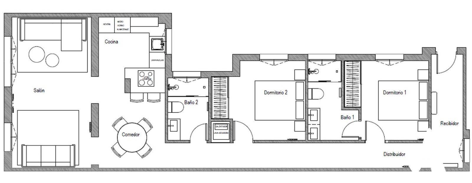 El inmueble se presenta amueblado y equipado con armarios empotrados, lo que facilita la organización y la optimización de la entrada desde el primer día. La calefacción central garantiza confort térmico continuo y un mantenimiento de gastos controlado, complementado por un trastero para almacenamiento adicional.