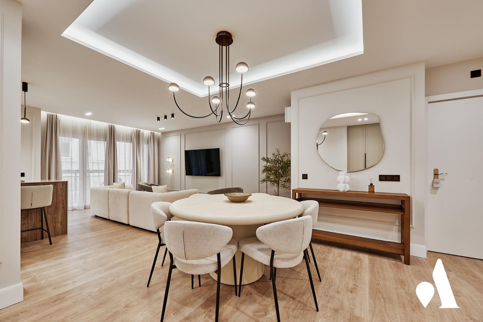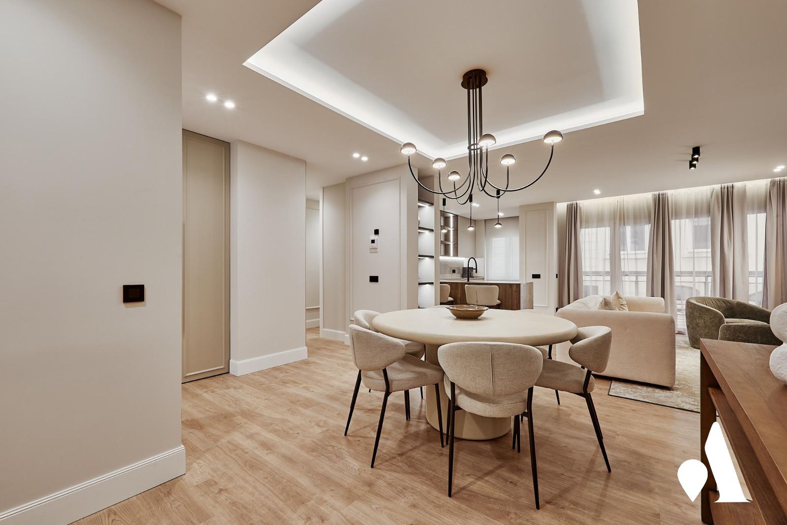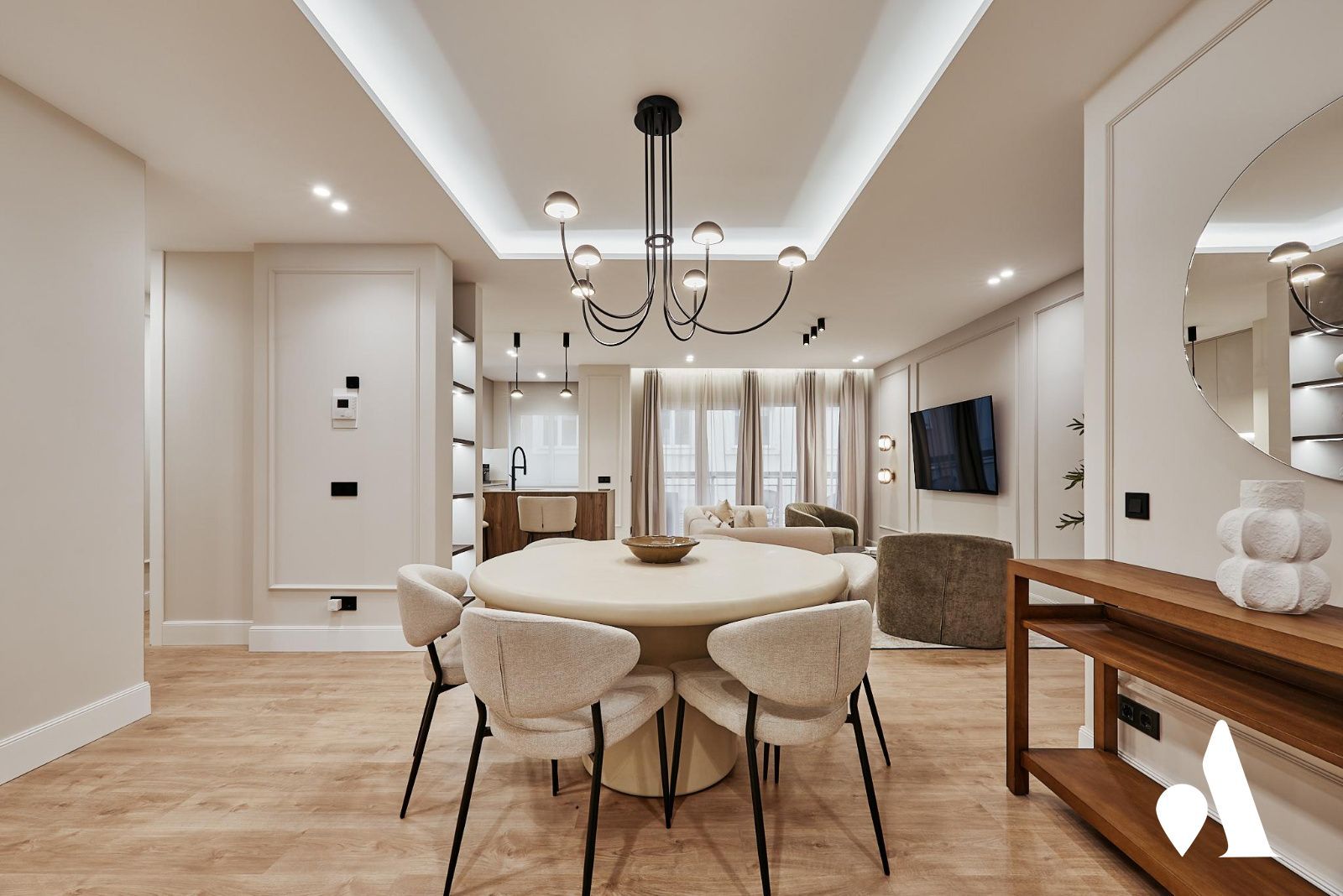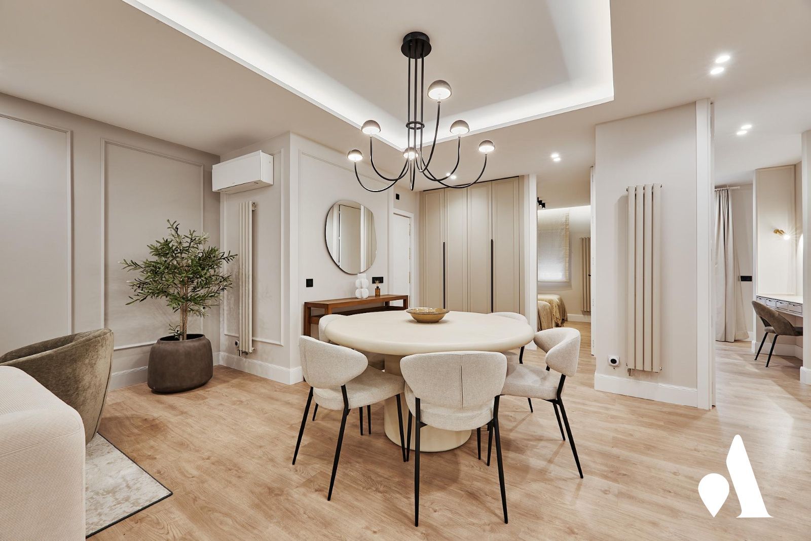 Inmueble en venta situado en Madrid, en la exclusiva zona del Barrio de Salamanca, con 109,00 m2 construidos y una terraza de 40,00 m2. La vivienda se ofrece amueblada y lista para entrar a vivir, con un diseño que equilibra la luminosidad y la funcionalidad. Presenta tres dormitorios y dos baños completos, además de un salón-comedor con amplios ventanales que permiten la entrada de la luz natural durante todo el día. La cocina está completamente amueblada y equipada, diseñada para facilitar la vida diaria y las rutinas de cocina en familia o entre colegas.