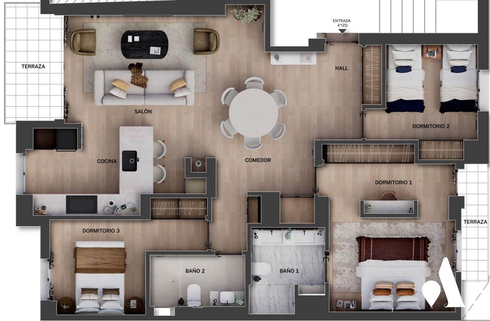 La propuesta se ubica en una zona con buenas conexiones y servicios, manteniendo un ambiente tranquilo y seguro. El edificio dispone de ascensor, conserje y servicios de mantenimiento que añaden comodidad para los residentes. Este piso ofrece un estilo de vida práctico y elegante, adecuado para familias, parejas o perfiles que buscan un hogar cómodo en una zona consolidada de Madrid. La terraza de 40,00 m2 se presenta como un valor añadido, ideal para desayunos, cenas al aire libre o para crear un rincón de descanso sin salir de casa.