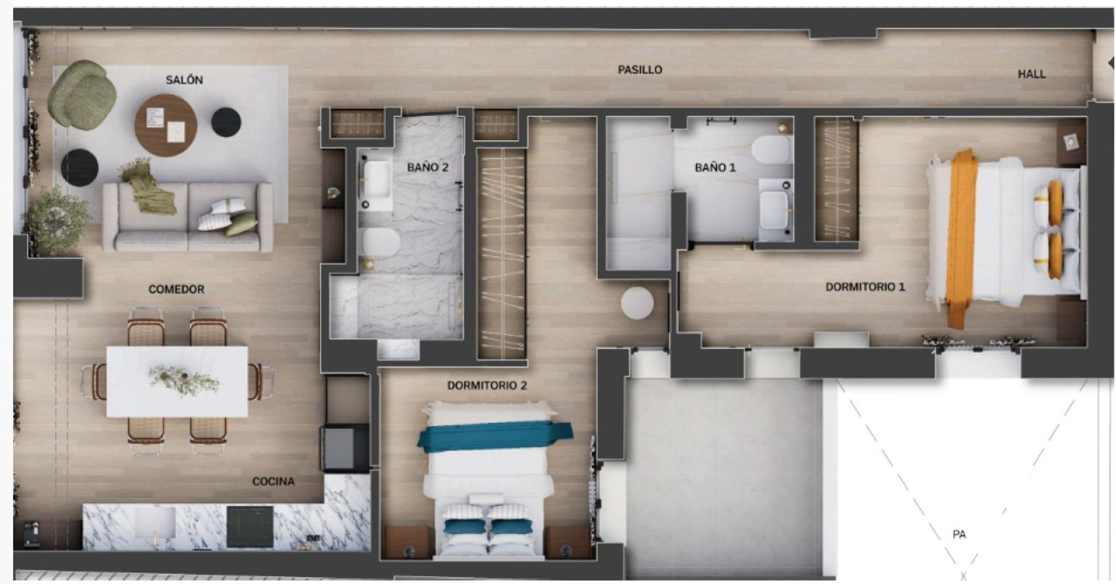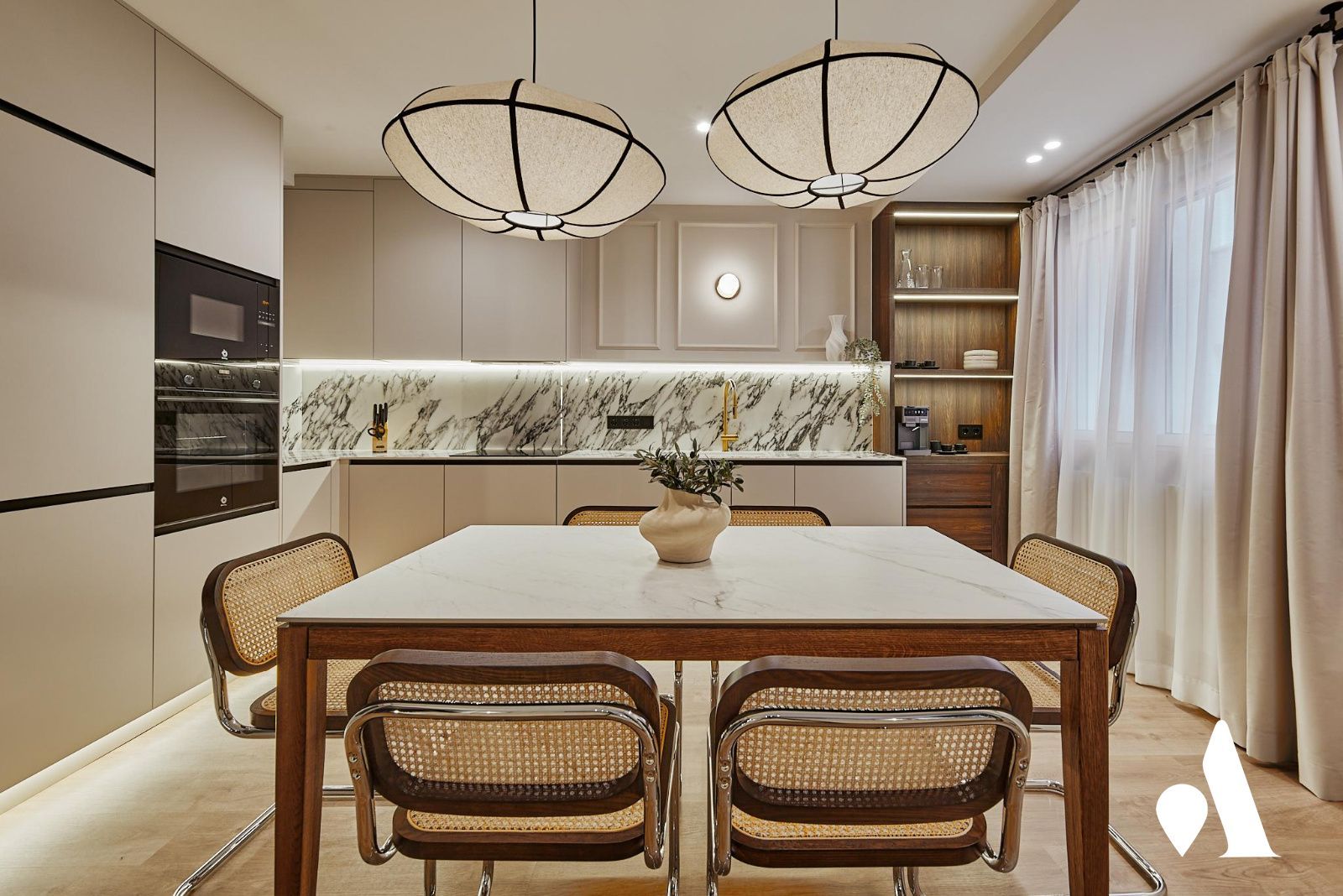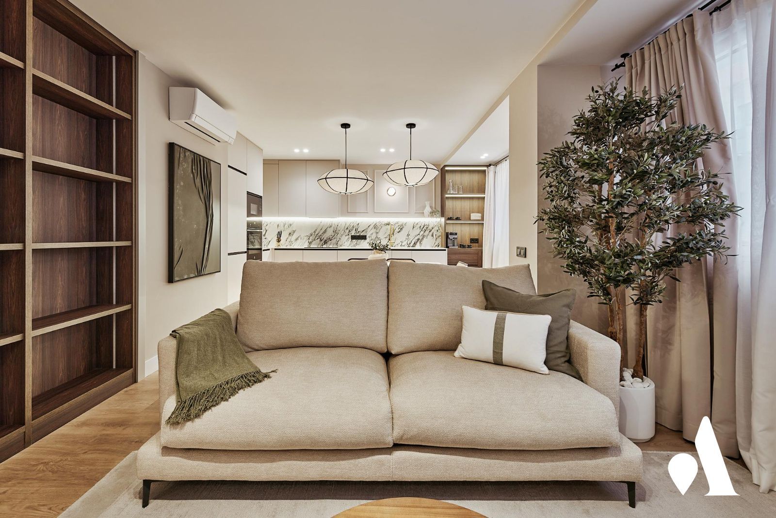 La calefacción central garantiza confort durante todo el año y su sistema de climatización añade versatilidad a las distintas estaciones. Entre las características destaca la presencia de armarios empotrados, que optimizan el almacenamiento sin restar superficie útil. La cocina se presenta amueblada y el inmueble se entrega amueblado, listo para entrar a vivir.