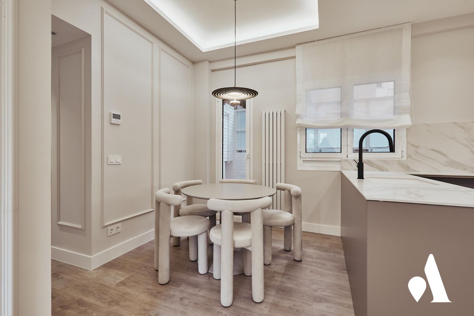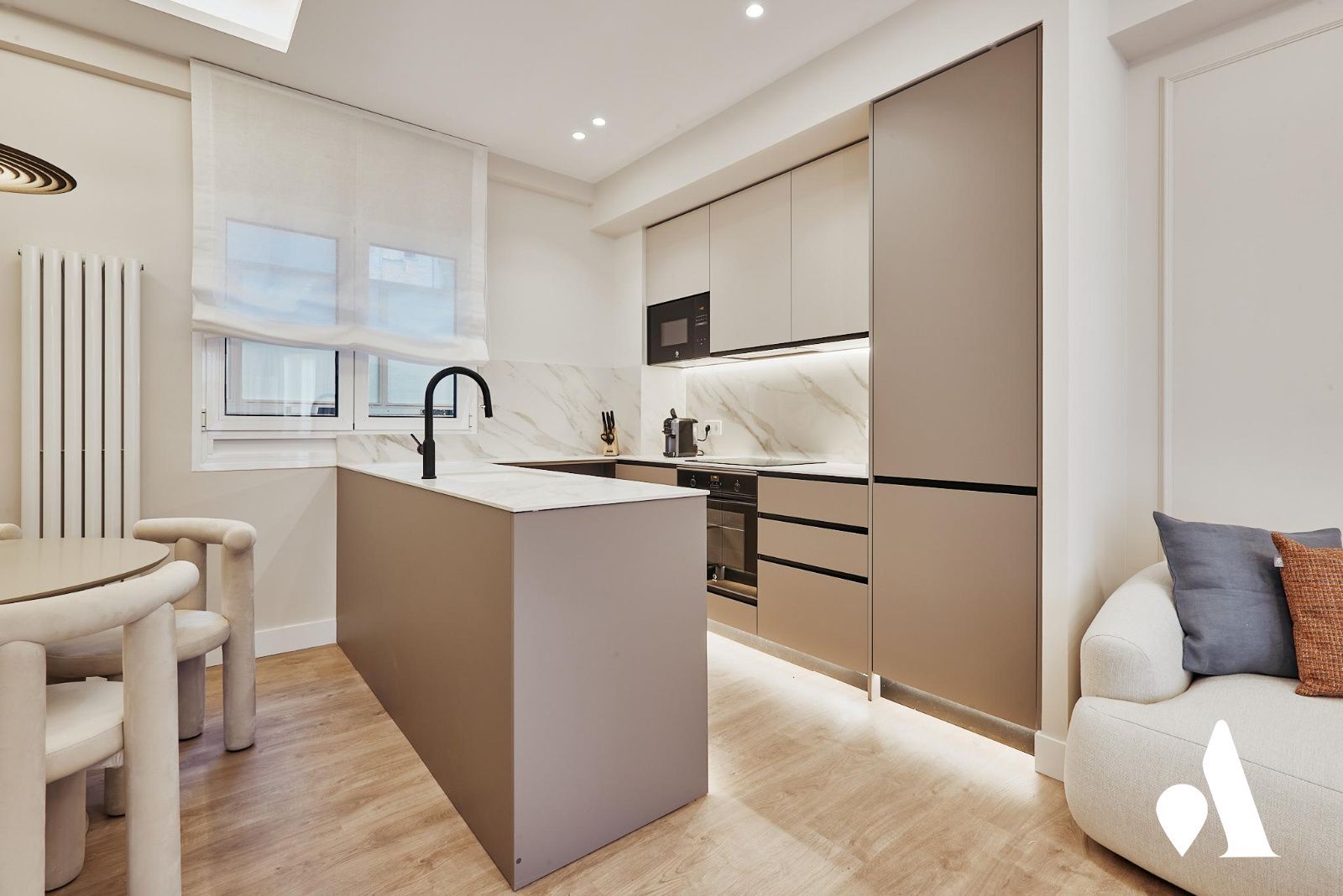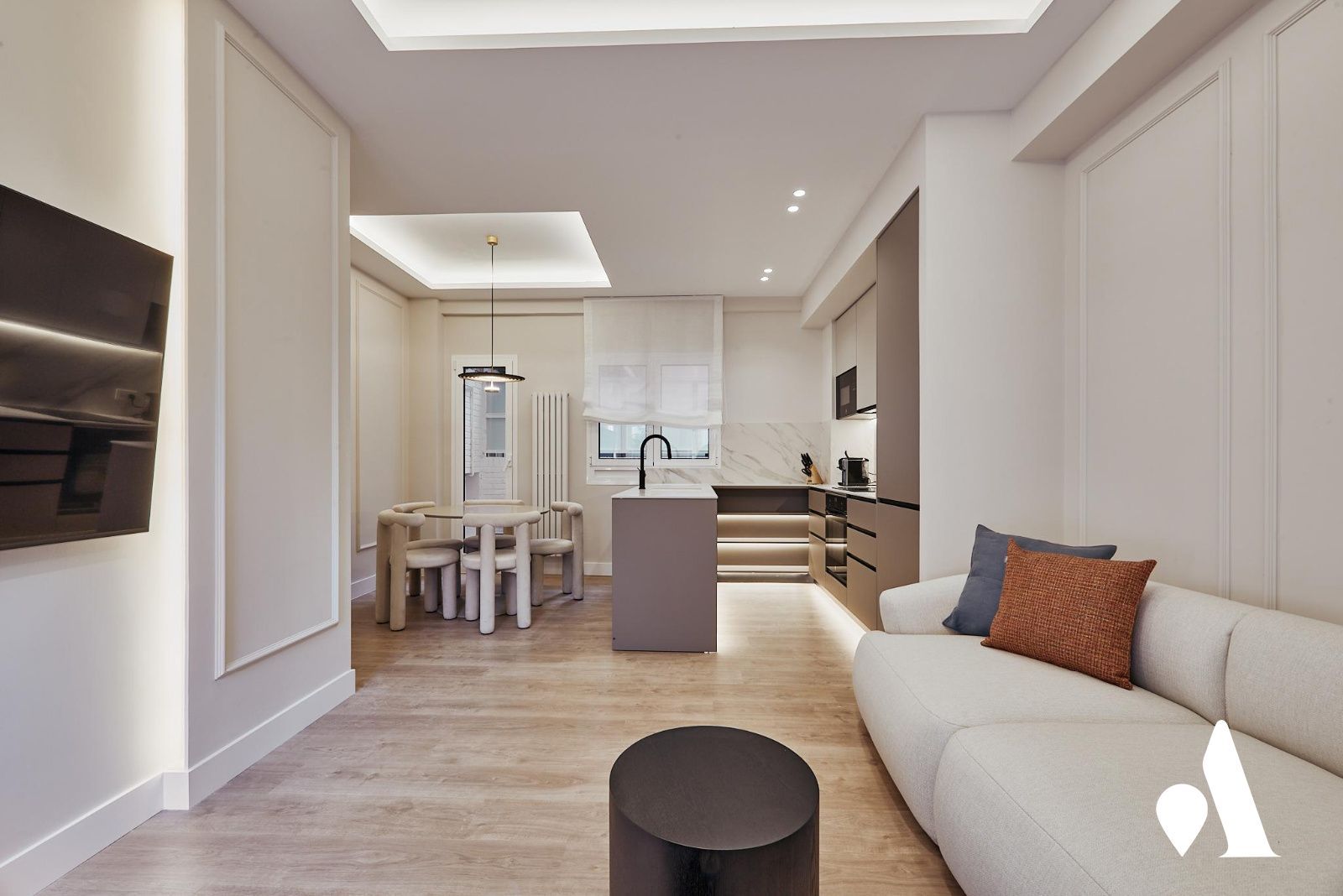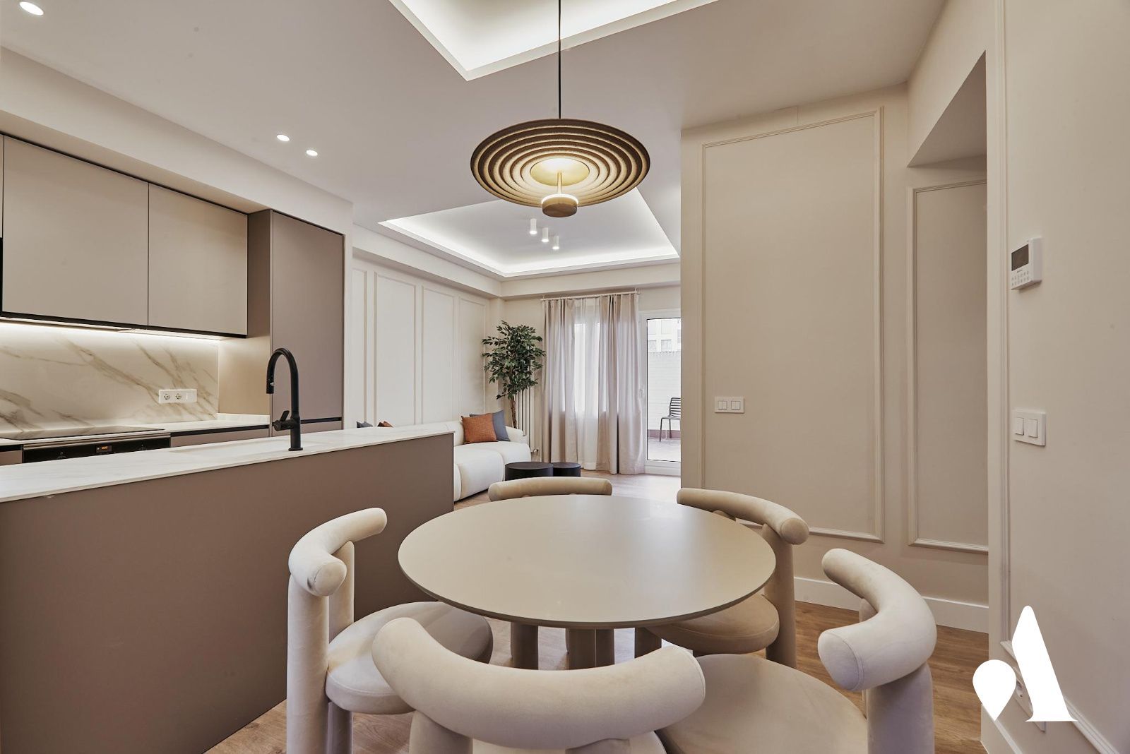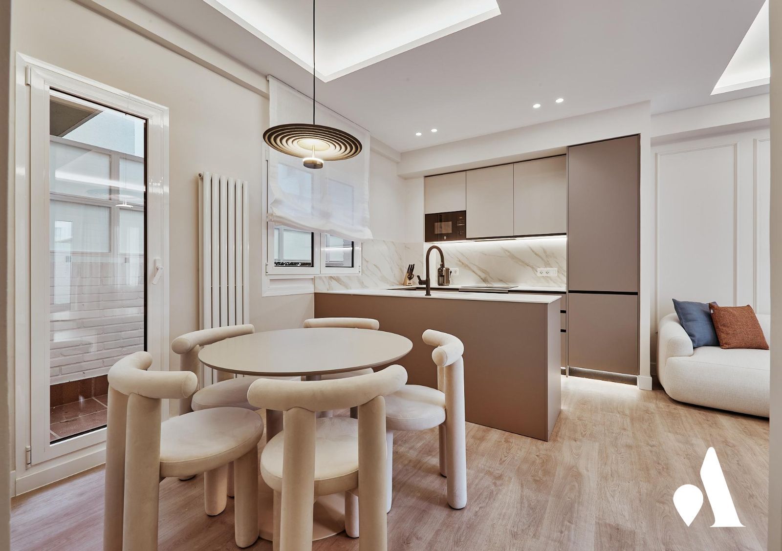 El salón comedor, conectado a la terraza, se convierte en un punto de encuentro cómodo para el uso diario y para recibir visitas. La cocina amueblada se presenta funcional y preparada para el uso inmediato, integrada con la zona de comedor para facilitar las tareas domésticas.