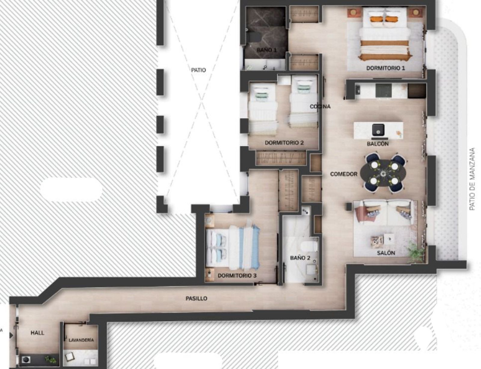 Inmueble en venta ubicado en el distinguido barrio de Salamanca, Madrid. Ofrece 99,00 m² útiles de interior con una distribución funcional y amplitud suficiente para familias contemporáneas o parejas que requieren espacio adicional, complementados por una terraza de 7,00 m² que aporta continuidad entre el interior y el exterior. El inmueble dispone de tres habitaciones y dos baños, dando respuesta a diferentes necesidades de uso, desde dormitorios principales a zonas de trabajo o estudio.