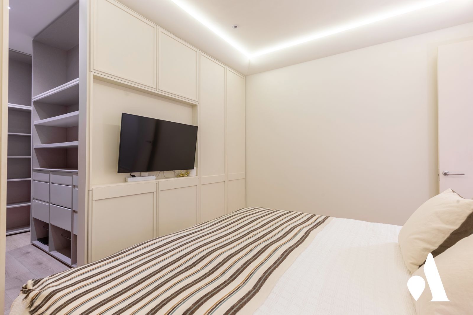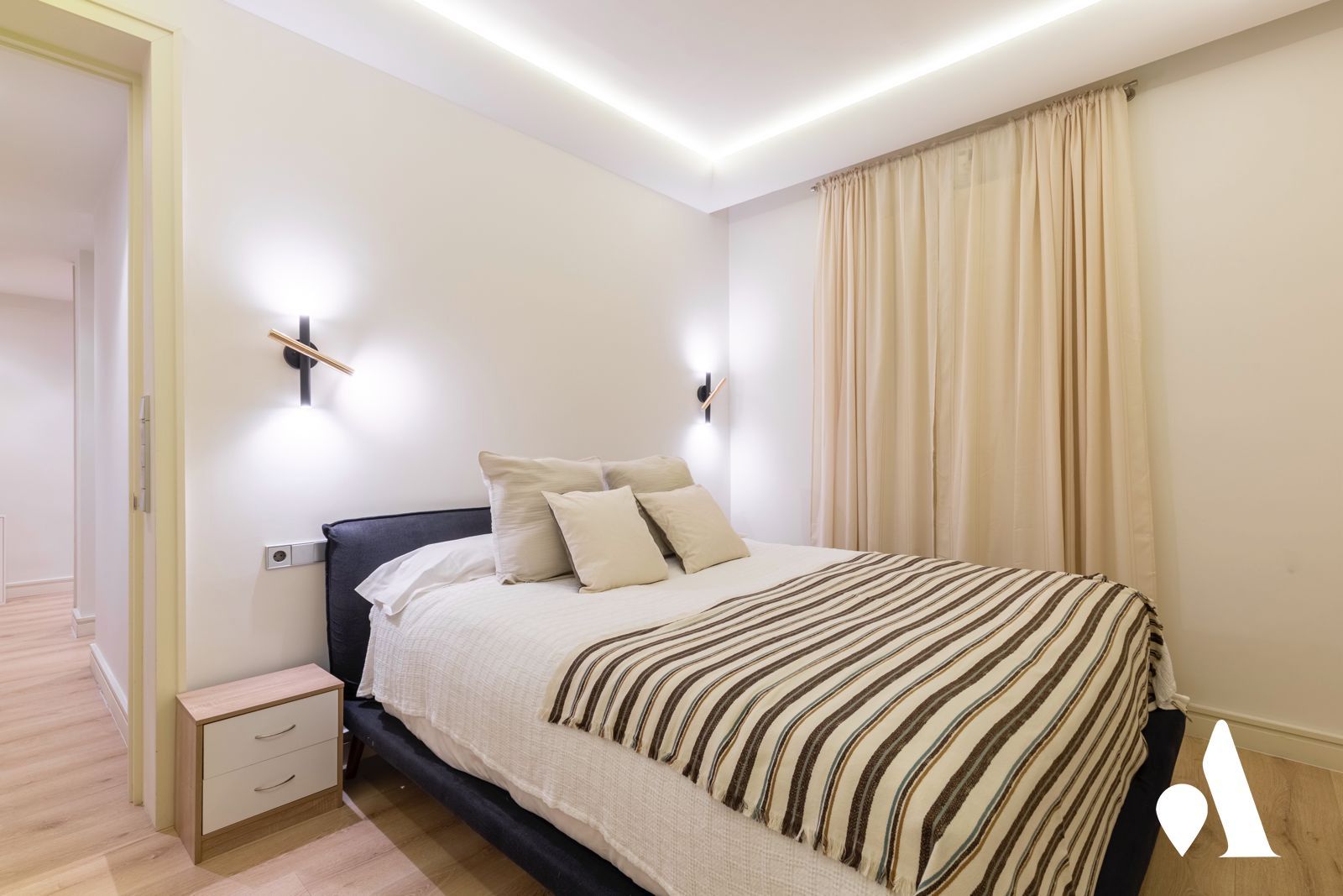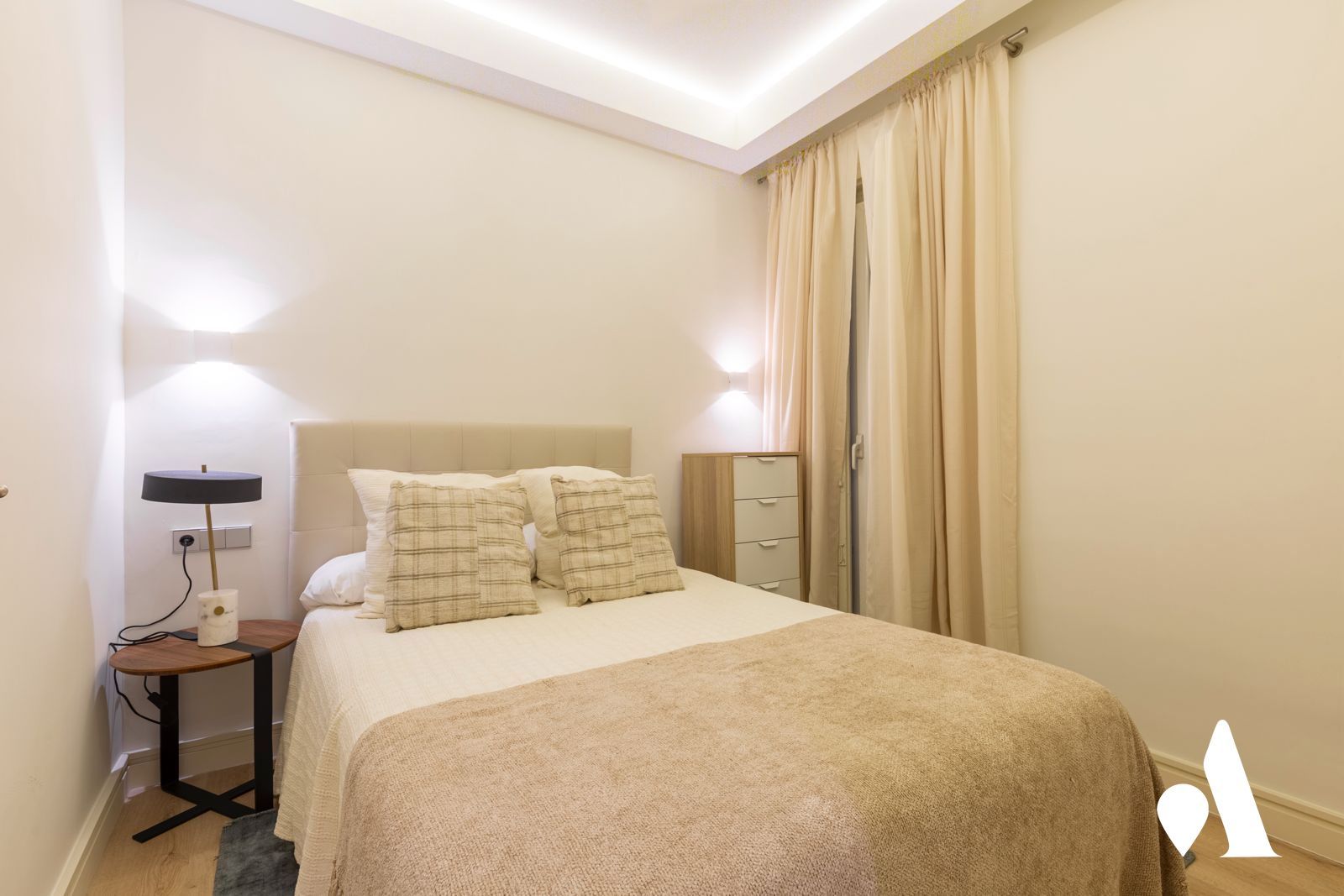 La vivienda cuenta con un amplio salón, lleno de luz natural gracias a sus balcones exteriores, creando una cuidada zona social ideal tanto para el día a día como para recibir invitados. Dispone de dos dormitorios y dos baños completos. El dormitorio principal cuenta con baño en suite y un gran vestidor, aportando un nivel de comodidad propio de una vivienda de alto standing. La segunda habitación, igualmente amplia y versátil, es perfecta como dormitorio adicional, despacho o cuarto de invitados.
