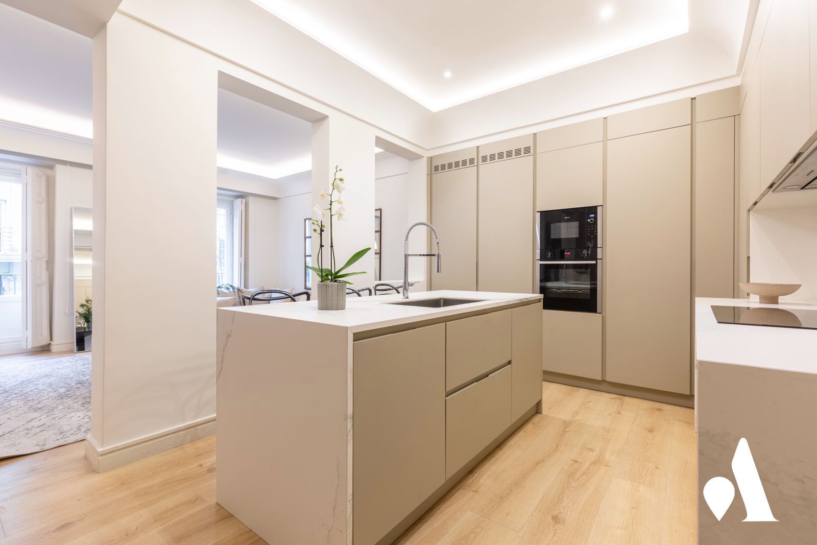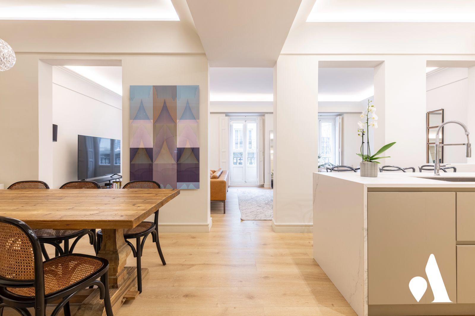 En una de las calles más representativas del exclusivo barrio de Almagro, se encuentra esta vivienda única, situada en un edificio señorial que ofrece privacidad, tranquilidad y distinción. Una propiedad exterior, recientemente reformada con altas calidades, con techos de más de tres metros de altura y un diseño funcional y elegante.
