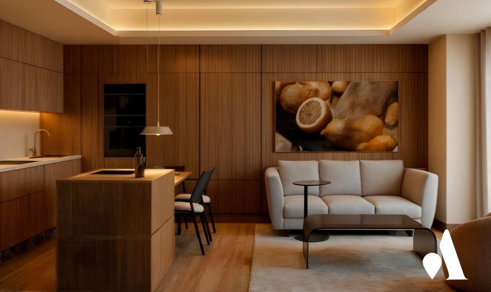 El salón, luminoso y espacioso, integra zona de comedor y se beneficia de ventanales que permiten la entrada de luz natural durante la mayor parte del día. La cocina abierta se presenta como una solución contemporánea, diseñada para la vida diaria y la experiencia de quien disfruta de la gastronomía en casa.