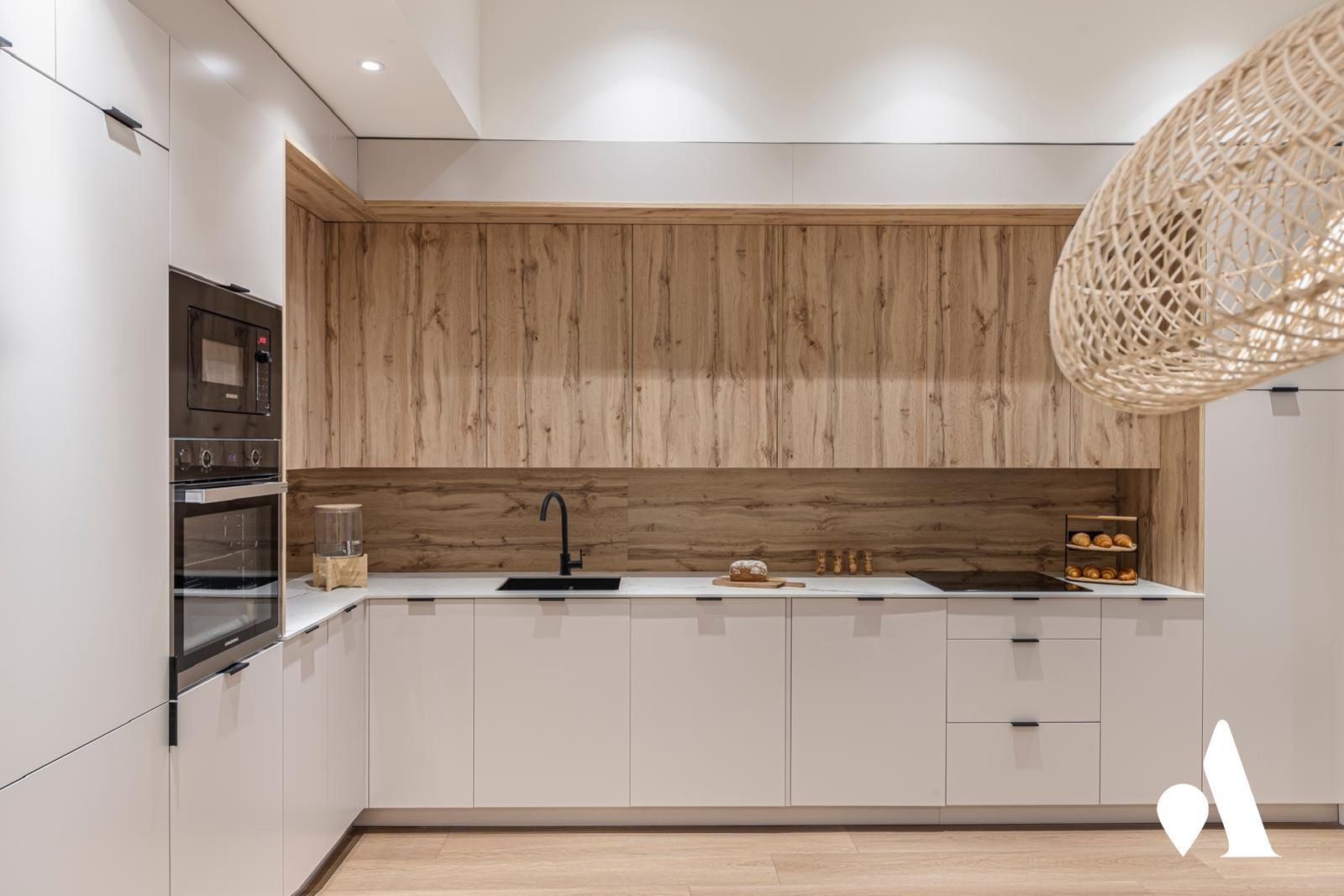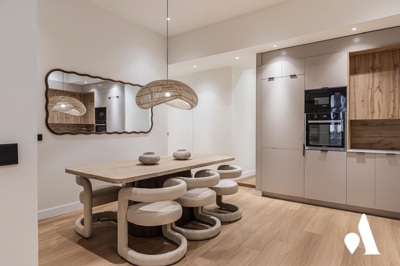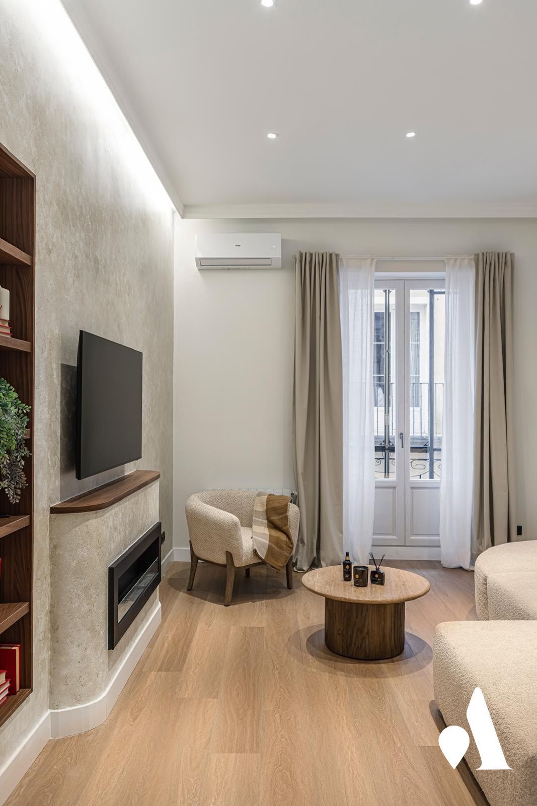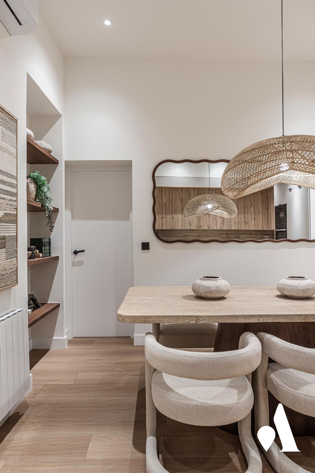 El salón se presenta como un espacio cómodo y versátil, ideal para reuniones o momentos de ocio, con iluminación natural que realza los acabados neutros y detalles cálidos. Los suelos de madera clara aportan continuidad visual y sensación de amplitud, complementando un conjunto con acabados modernos y funcionales. La distribución aprovecha las zonas de día y de descanso, creando flujos que facilitan la convivencia y la gestión del espacio en usos mixtos, ya sea residencia o inversión.