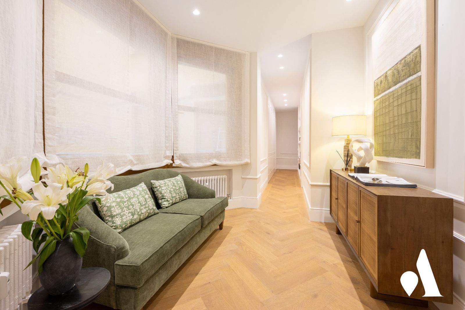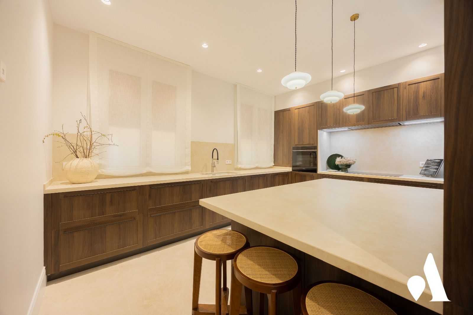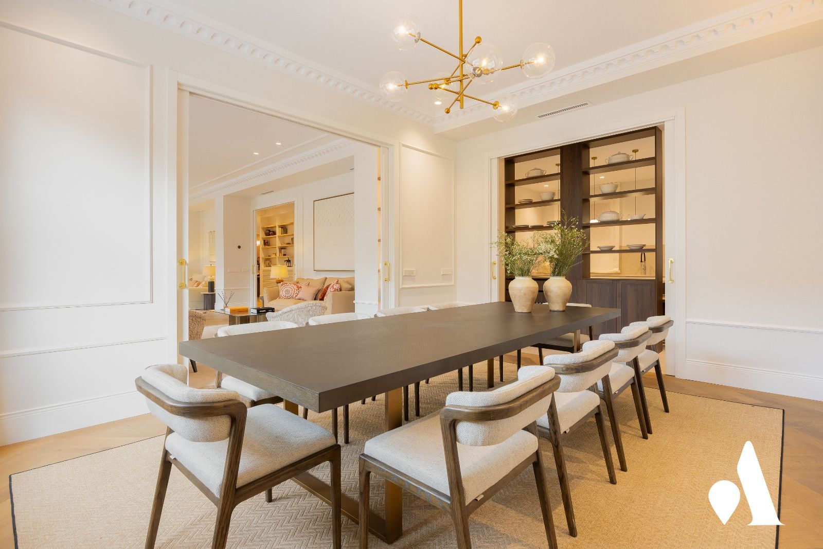 Con 451 m2 construidos y una terraza ajardinada de 43 m2, este inmueble se configura como un techo de uso mixto para vivir y recibir. La distribución contempla tres zonas de salones, un comedor y una cocina semi-integrada, pensadas para el confort diario y la recepción de invitados. En la zona nocturna, se disponen cuatro dormitorios en suite, el principal con dos vestidores y dos baños completos, garantizando privacidad y lujo para todos los miembros de la familia. Adicionalmente, existe un family room con acceso directo a la terraza, una opción que facilita la implantación de un quinto dormitorio si se necesitara. Completan la vivienda una lavandería y un aseo de cortesía, optimizando la funcionalidad en el día a día.